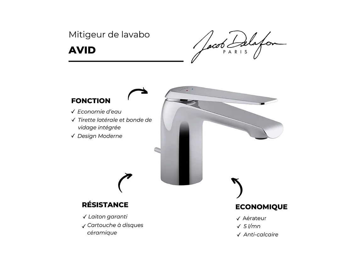Mitigeur lavabo JACOB DELAFON Avid + nettoyant Briochin