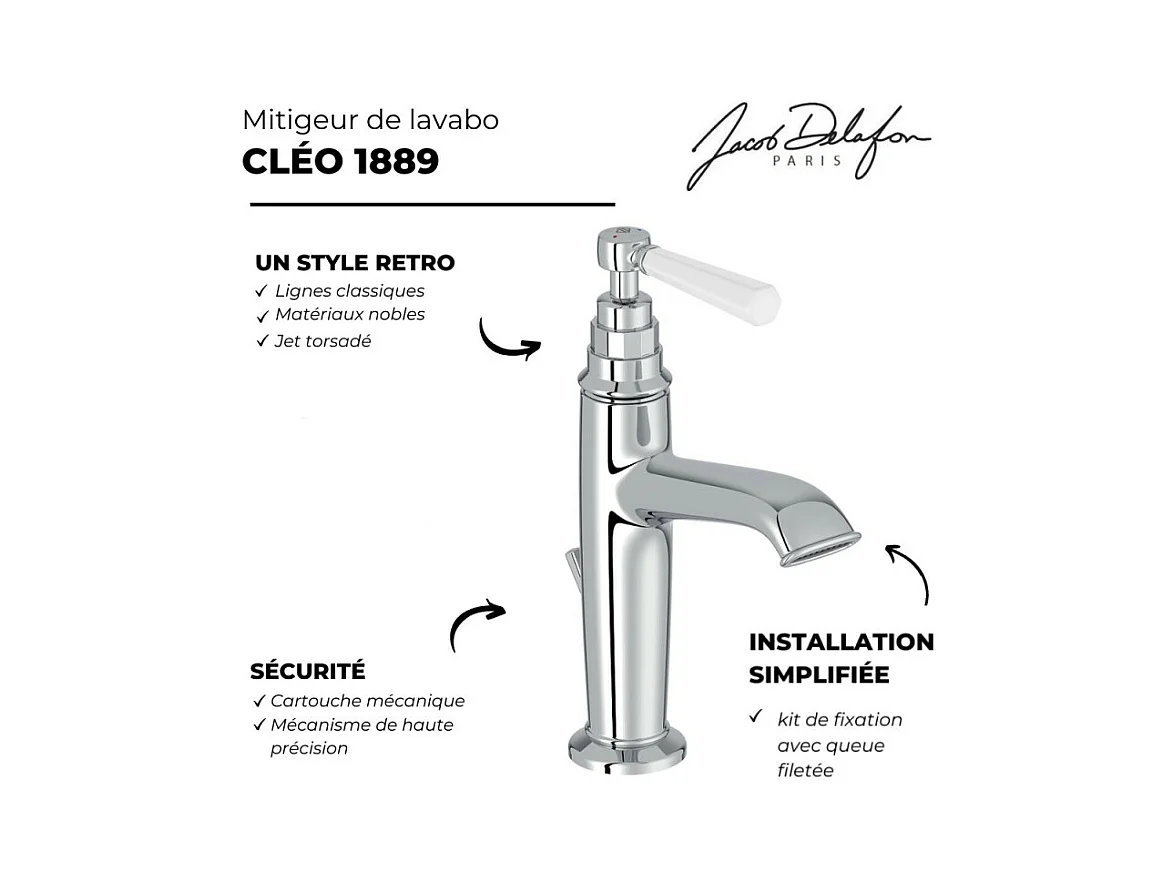 Mitigeur lavabo JACOB DELAFON Cléo 1889 Chrome