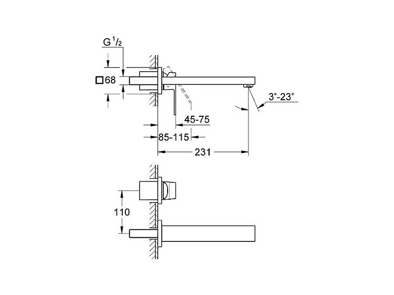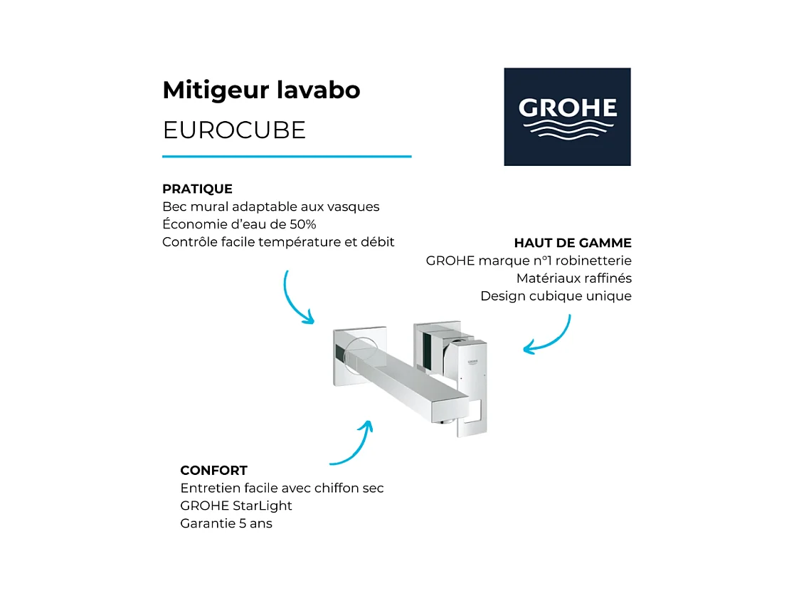 Mitigeur lavabo mural GROHE Eurocube taille M + corps encastré