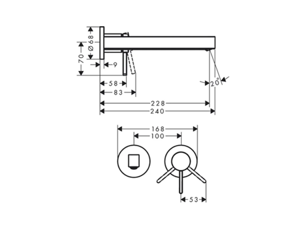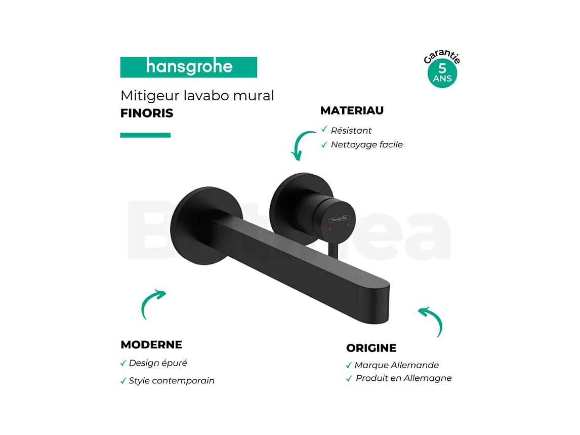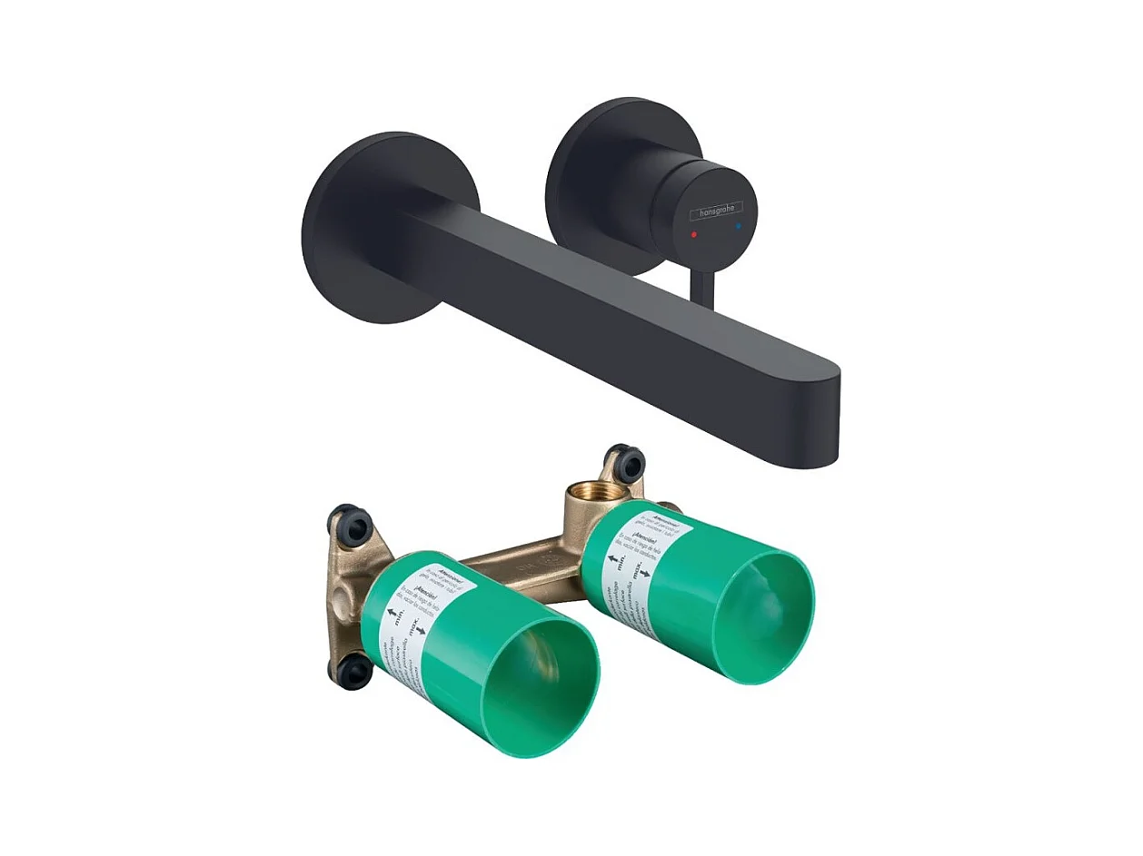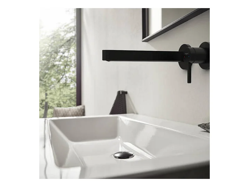 Mitigeur lavabo mural HANSGROHE Finoris 255 mm + bonde à écoulement libre Noir mat + Corps encastré