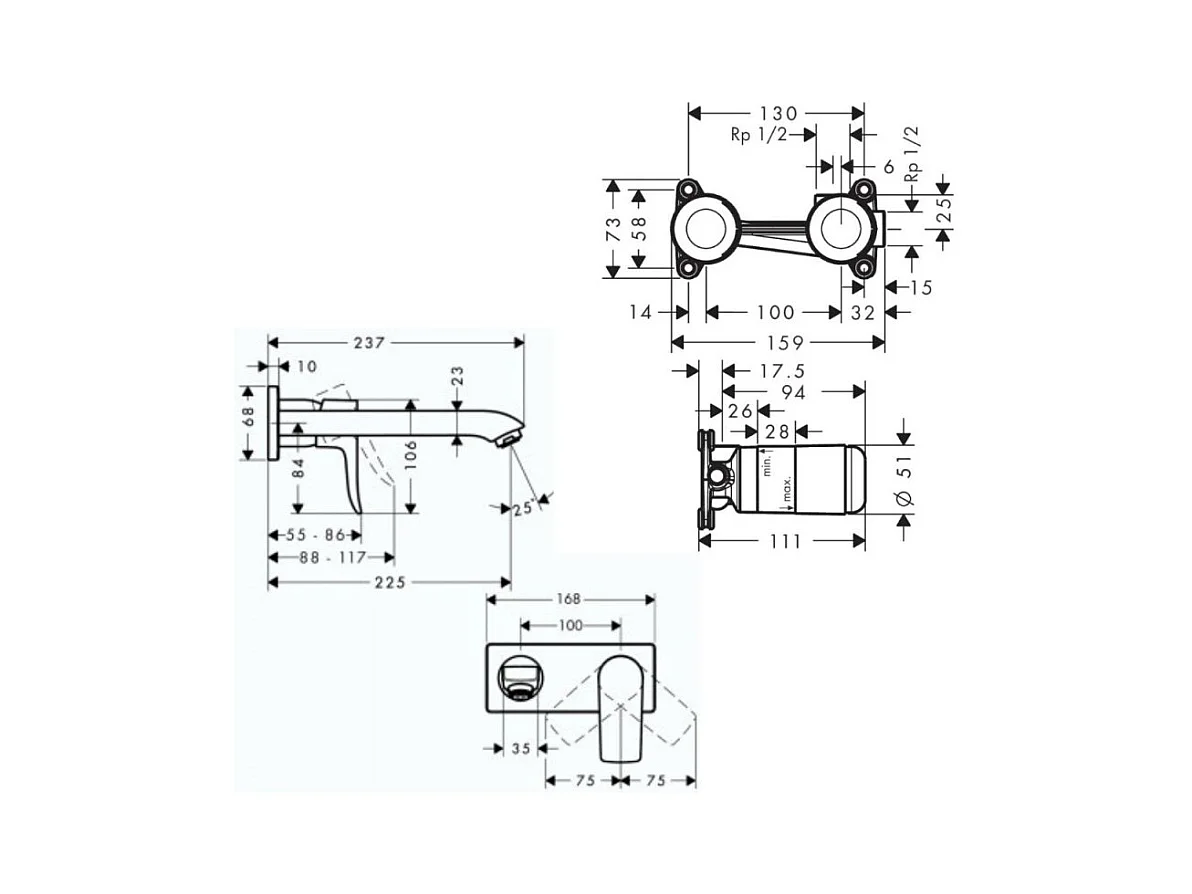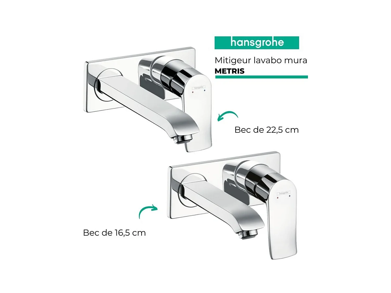Mitigeur lavabo mural HANSGROHE Metris + corps encastré Economie d'eau
