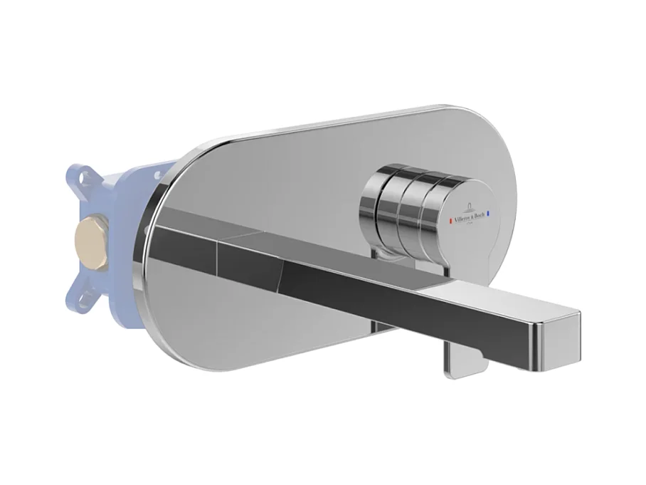 Mitigeur lavabo mural VILLEROY ET BOCH Architectura avec vidage Push Open chrome + corps encastré