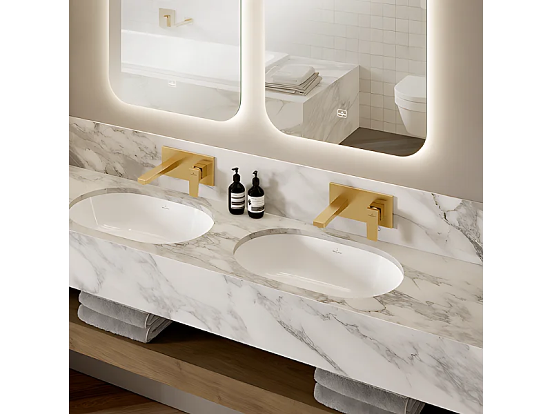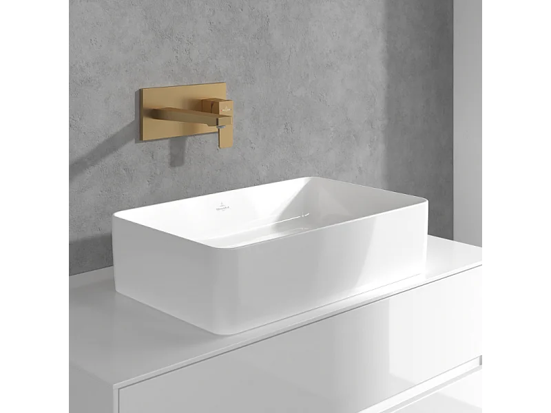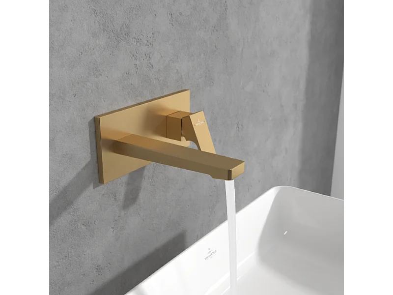 Mitigeur lavabo mural VILLEROY ET BOCH Architectura Square avec vidage Push Open Or brossé