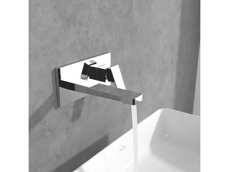Mitigeur lavabo mural VILLEROY ET BOCH Architectura Square avec vidage Push Open Chrome