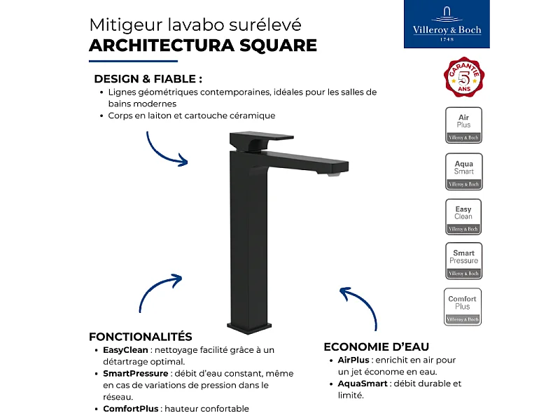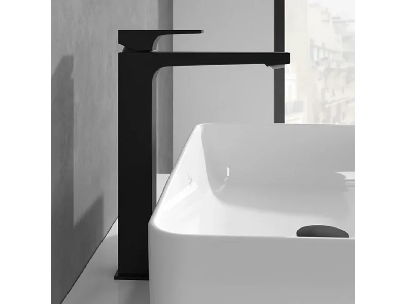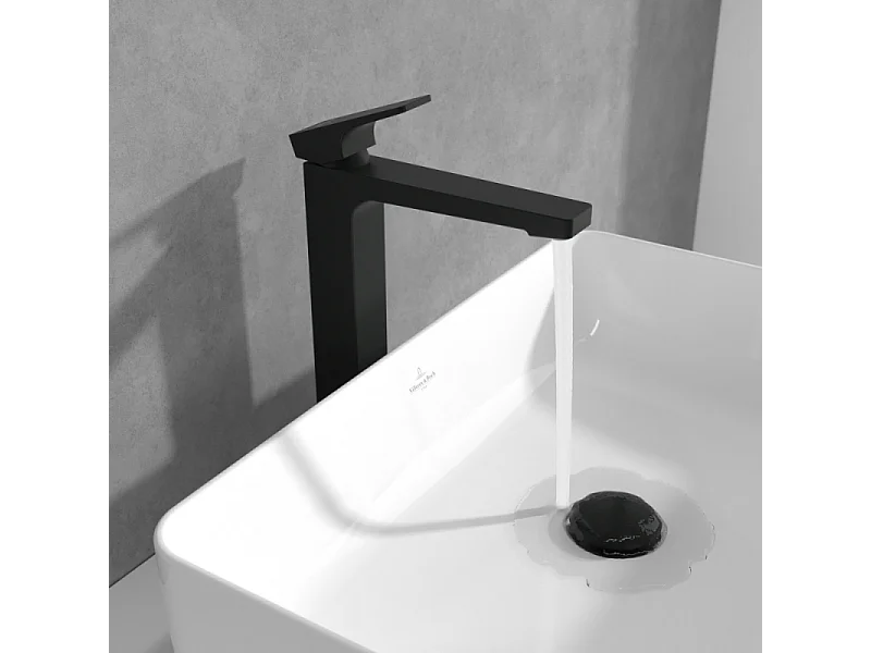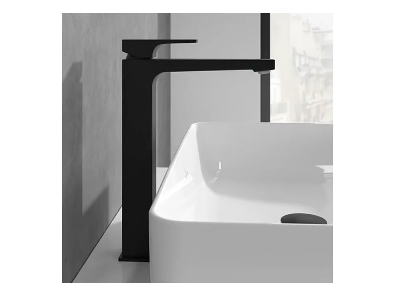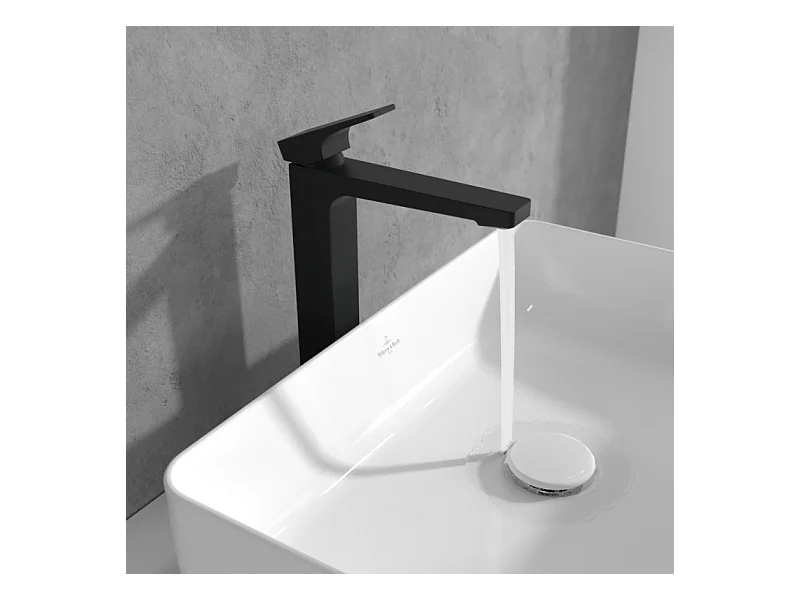 Mitigeur lavabo surélevé VILLEROY ET BOCH Architectura Square avec vidage Push Open Noir mat
