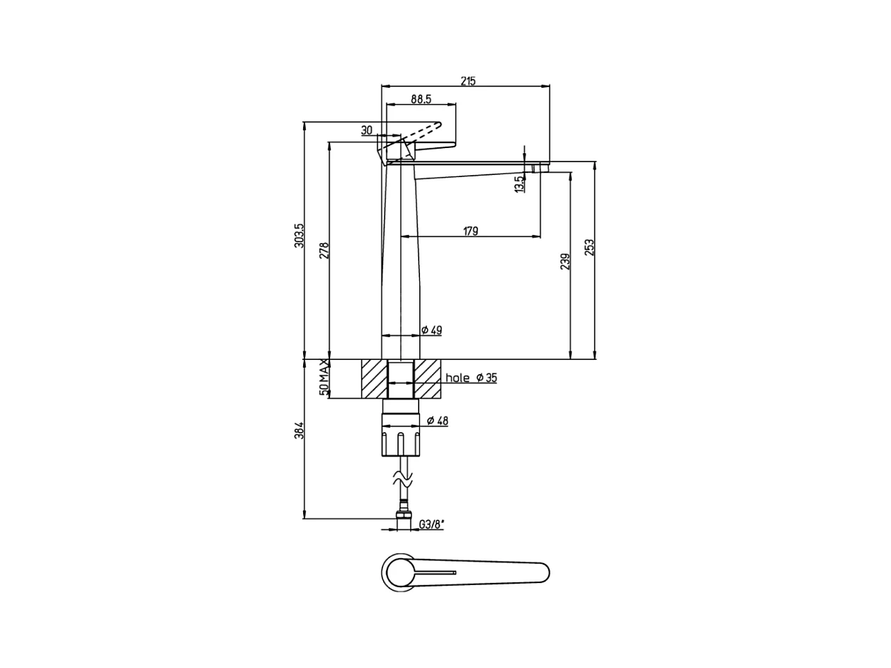 Mitigeur lavabo surélevé VILLEROY ET BOCH Conum avec vidage Push Open Chrome