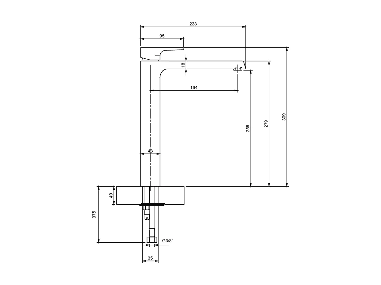 Mitigeur lavabo surélevée VILLEROY ET BOCH Liberty XXXL sans tirette Chrome
