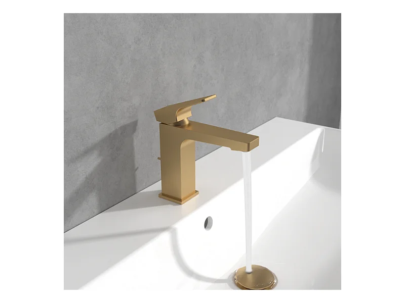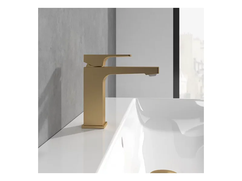 Mitigeur lavabo VILLEROY ET BOCH Architectura Square avec tirette Or brossé
