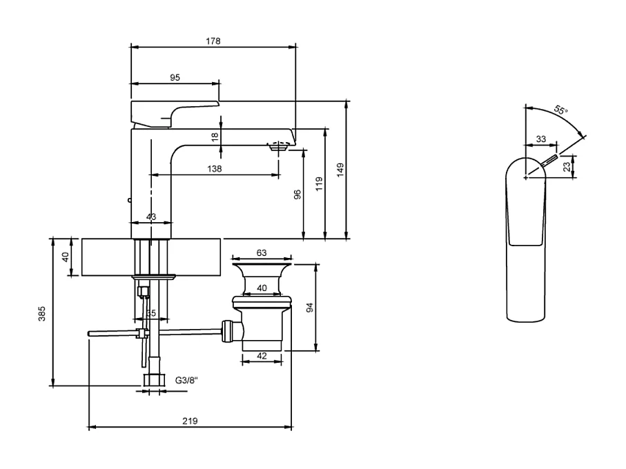 Mitigeur lavabo VILLEROY ET BOCH Liberty L avec tirette Chrome