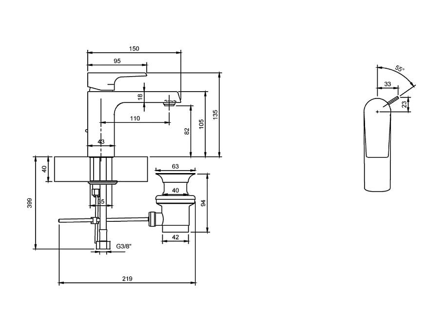 Mitigeur lavabo VILLEROY ET BOCH Liberty S avec tirette Chrome