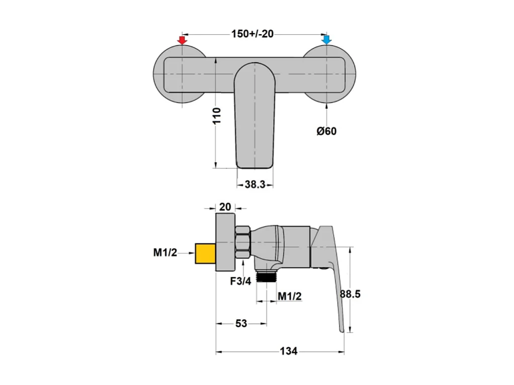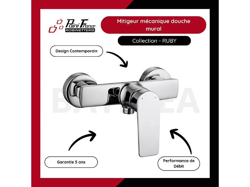 Mitigeur mécanique douche mural PAINI Ruby Chrome