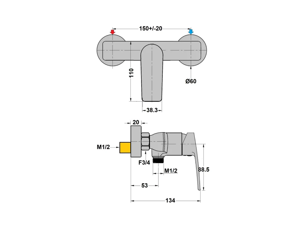 Mitigeur mécanique douche VILLEROY ET BOCH Subway 3.0 Matt Black