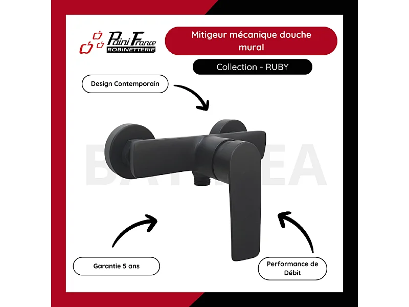 Mitigeur mécanique douche mural PAINI Ruby Noir Mat