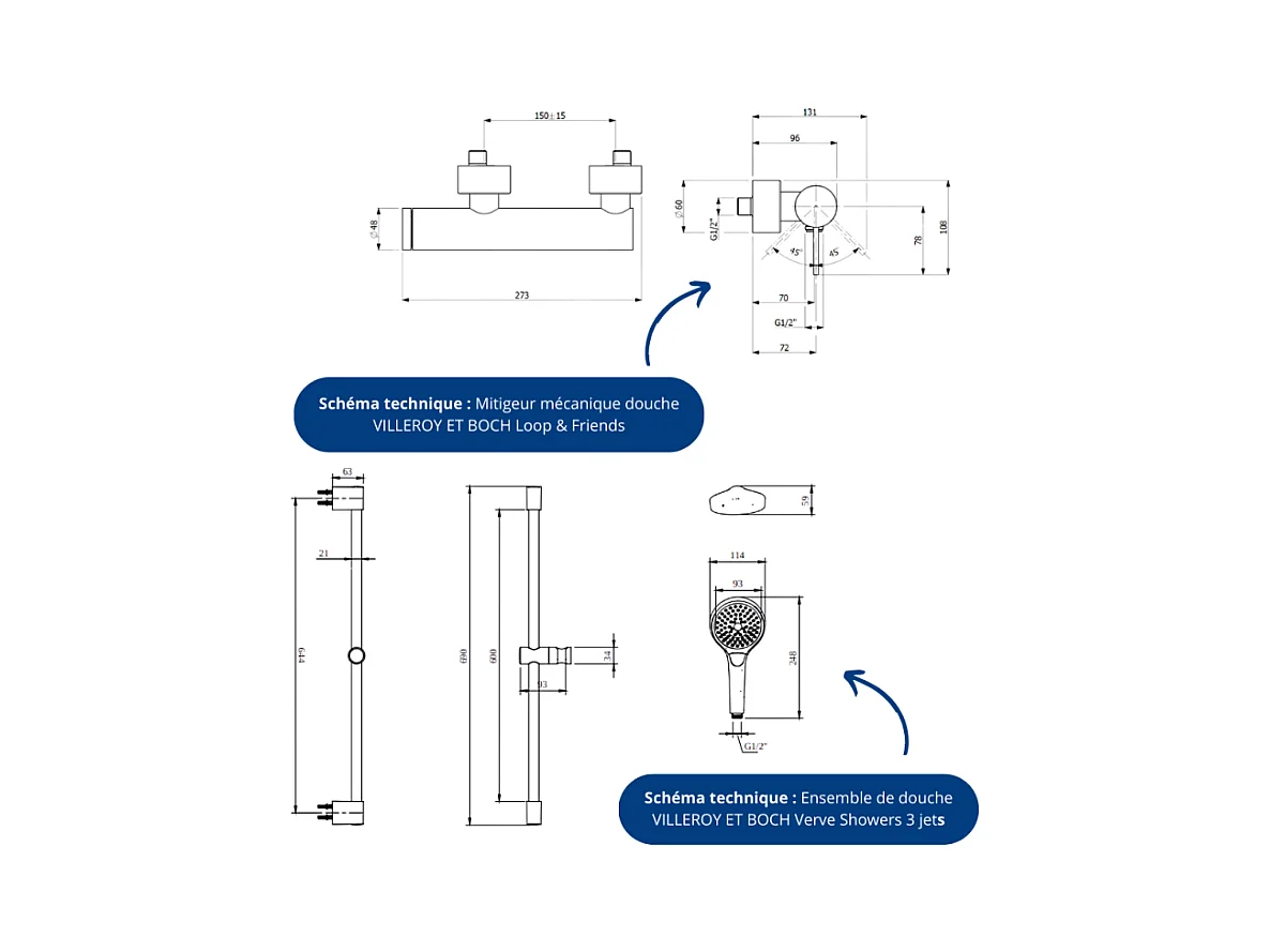 Mitigeur mécanique douche VILLEROY ET BOCH Loop & Friends+ Ensemble de doucheVerve Showers 3 jets Noir mat