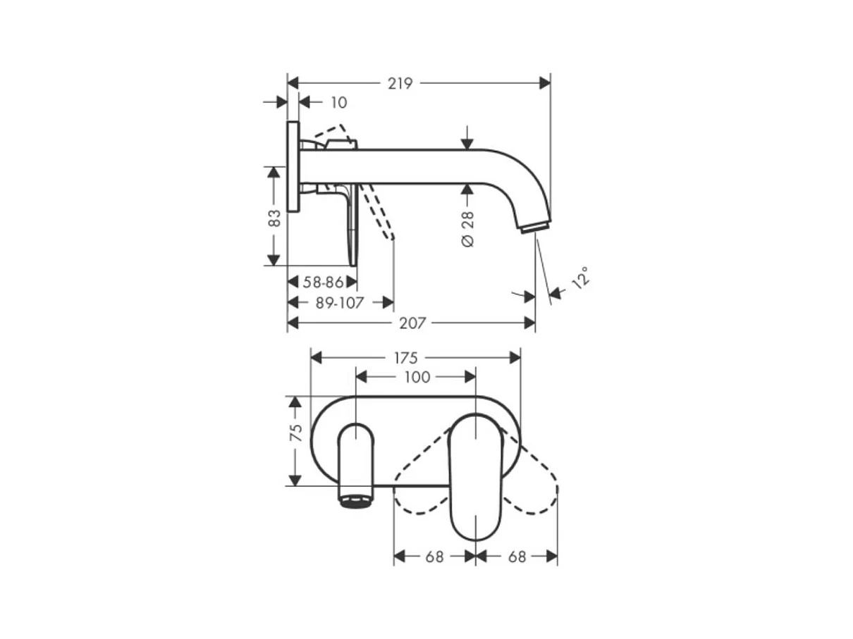 Mitigeur mural lavabo HANSGROHE, Vernis Blend, chromé + Corps encastré