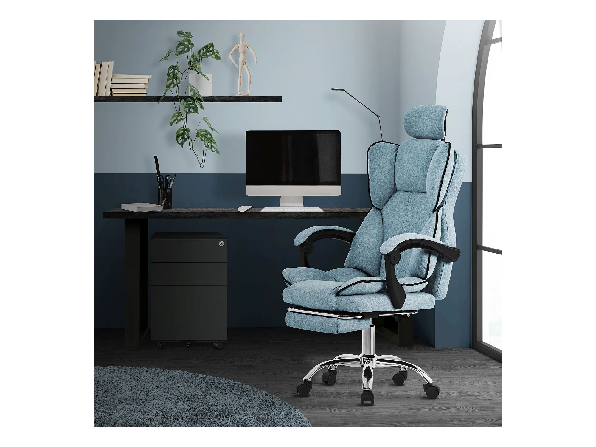 Chaise de bureau gaming ergonomique bleu pivotant en maille appui-tête réglable
