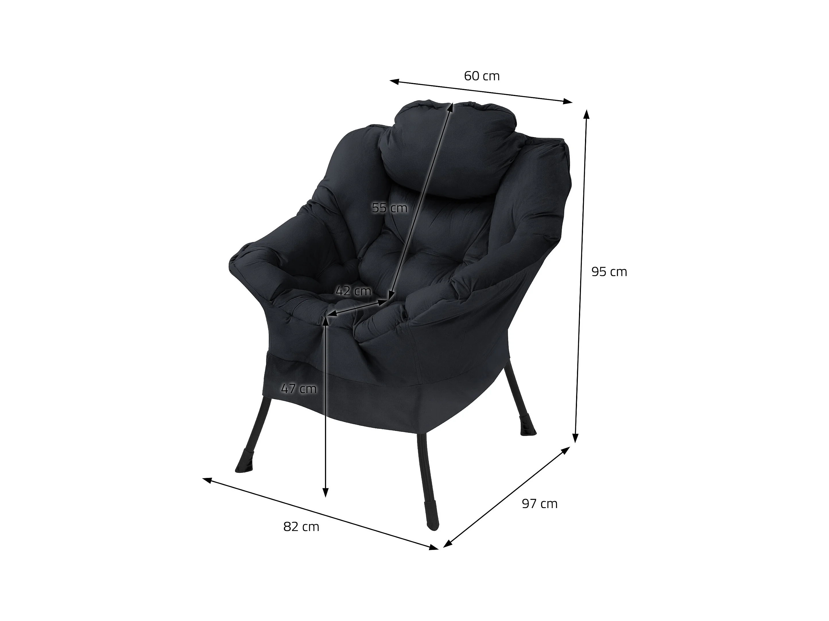 ML-Design Fauteuil relax noir, Fauteuil de salon avec accoudoirs & poche latérale