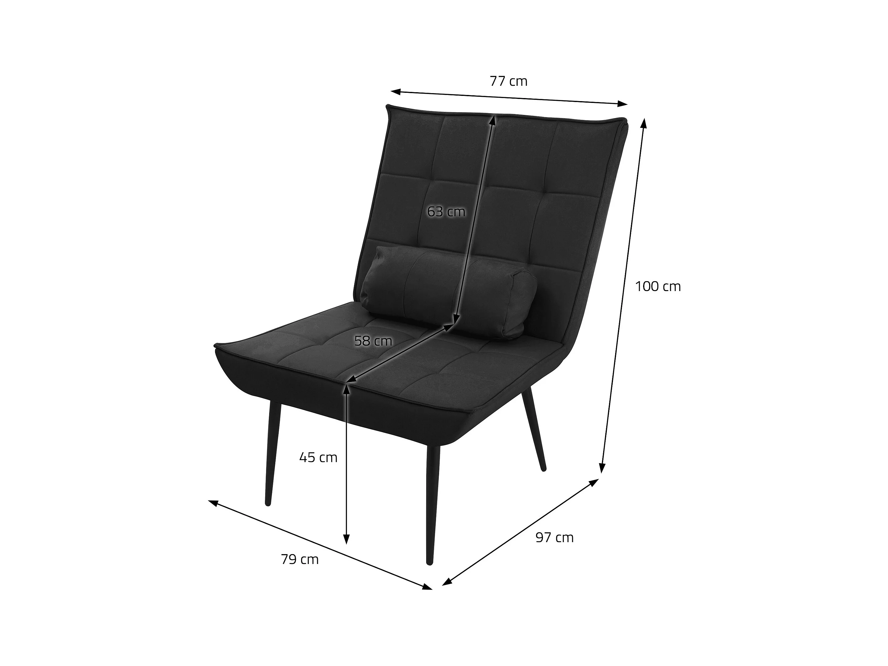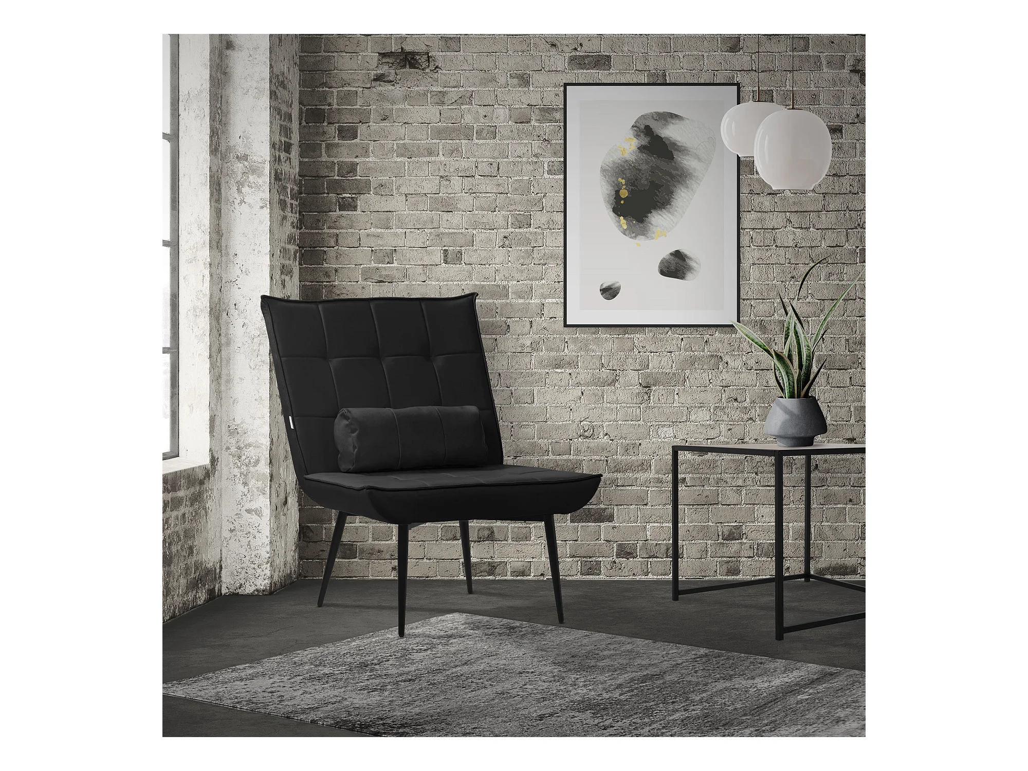 Fauteuil lounge noir avec coussin lombaire chaise rembourré design rétro pieds métalliques canapé d'accentuation individuel de relax ergonomique