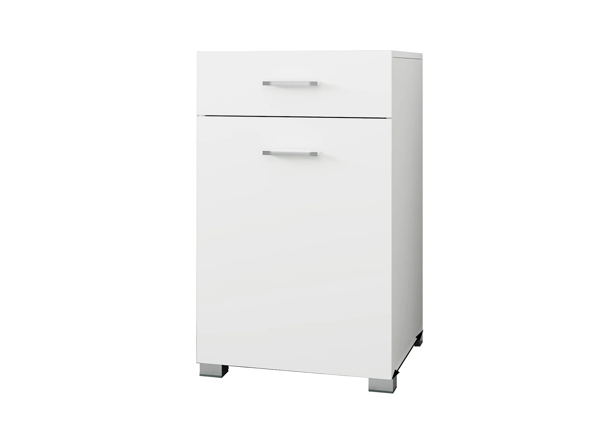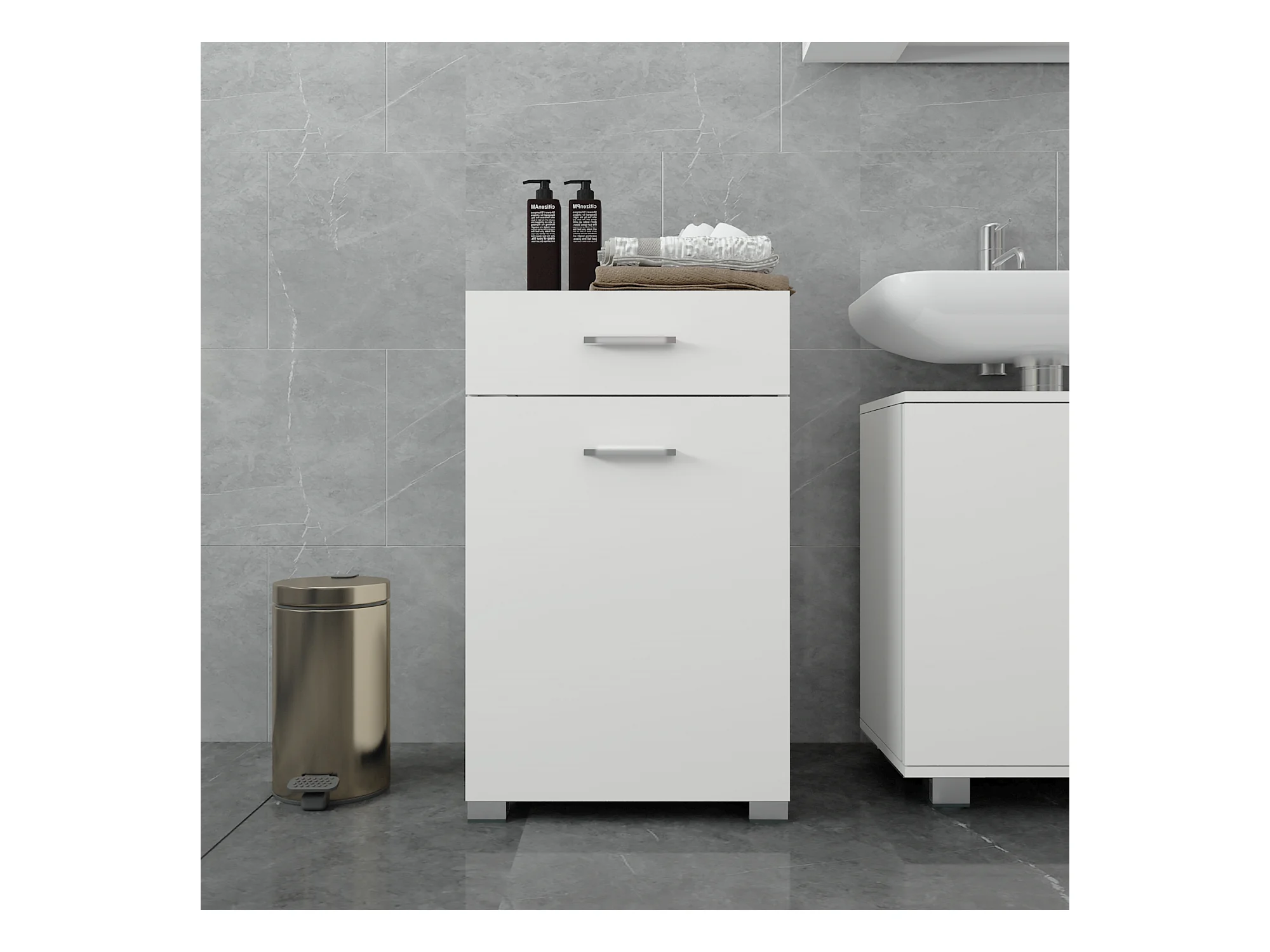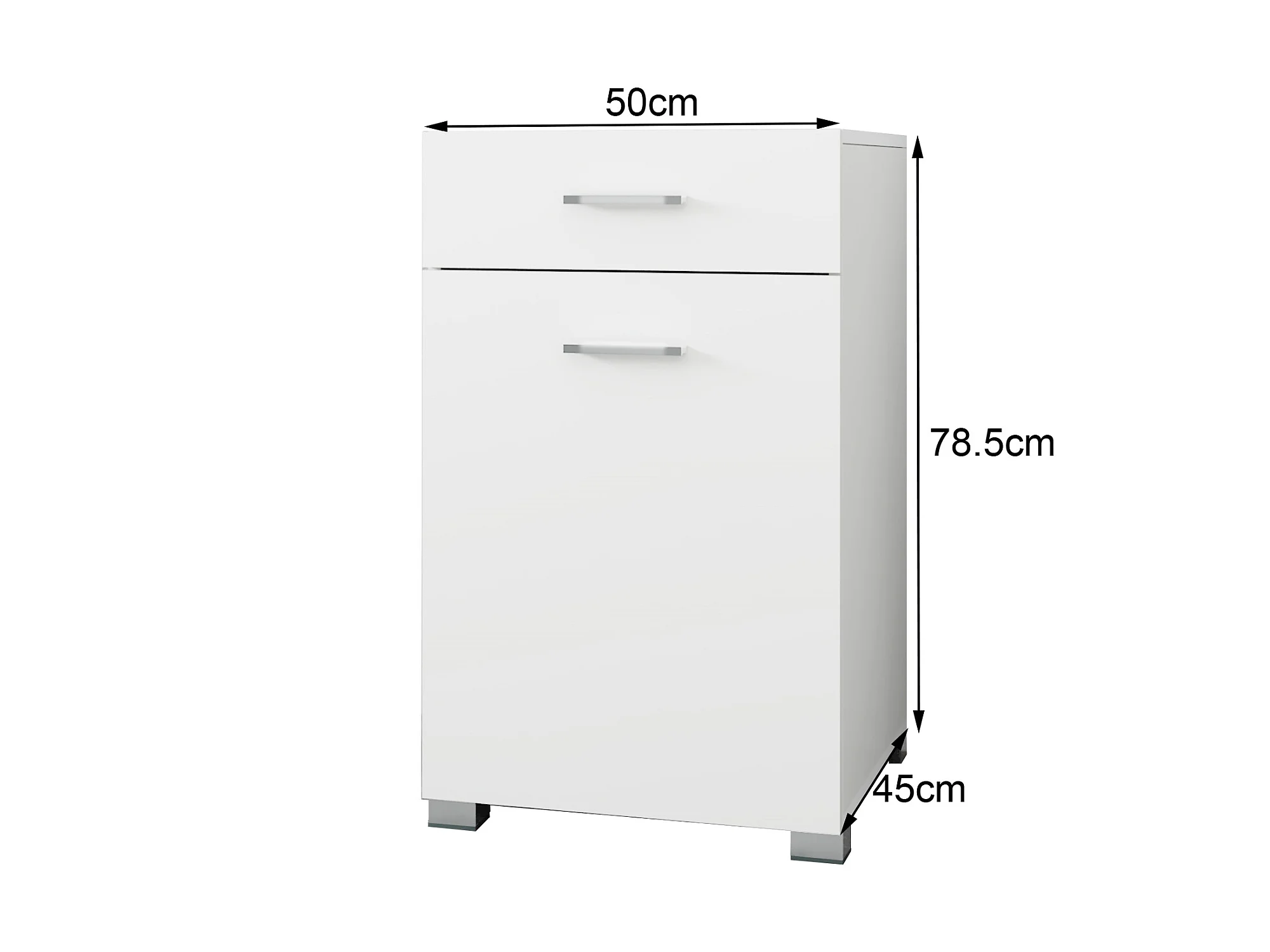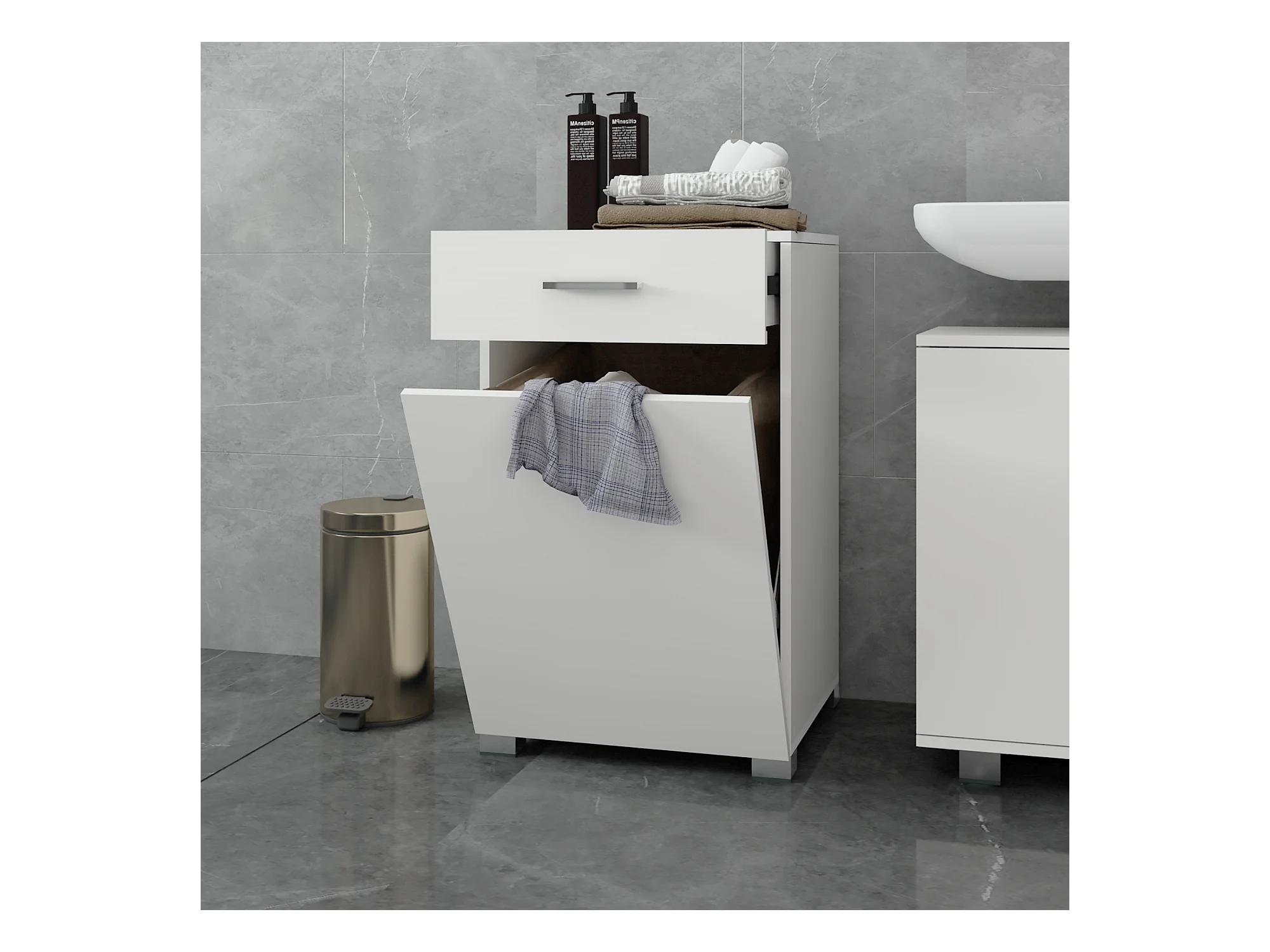ML-Design Meuble Bas de Salle de Bain, Blanc, 50 x 78,5 x 45 cm, avec 1 Tiroir et 1 Panier à Linge, MDF Mélaminé