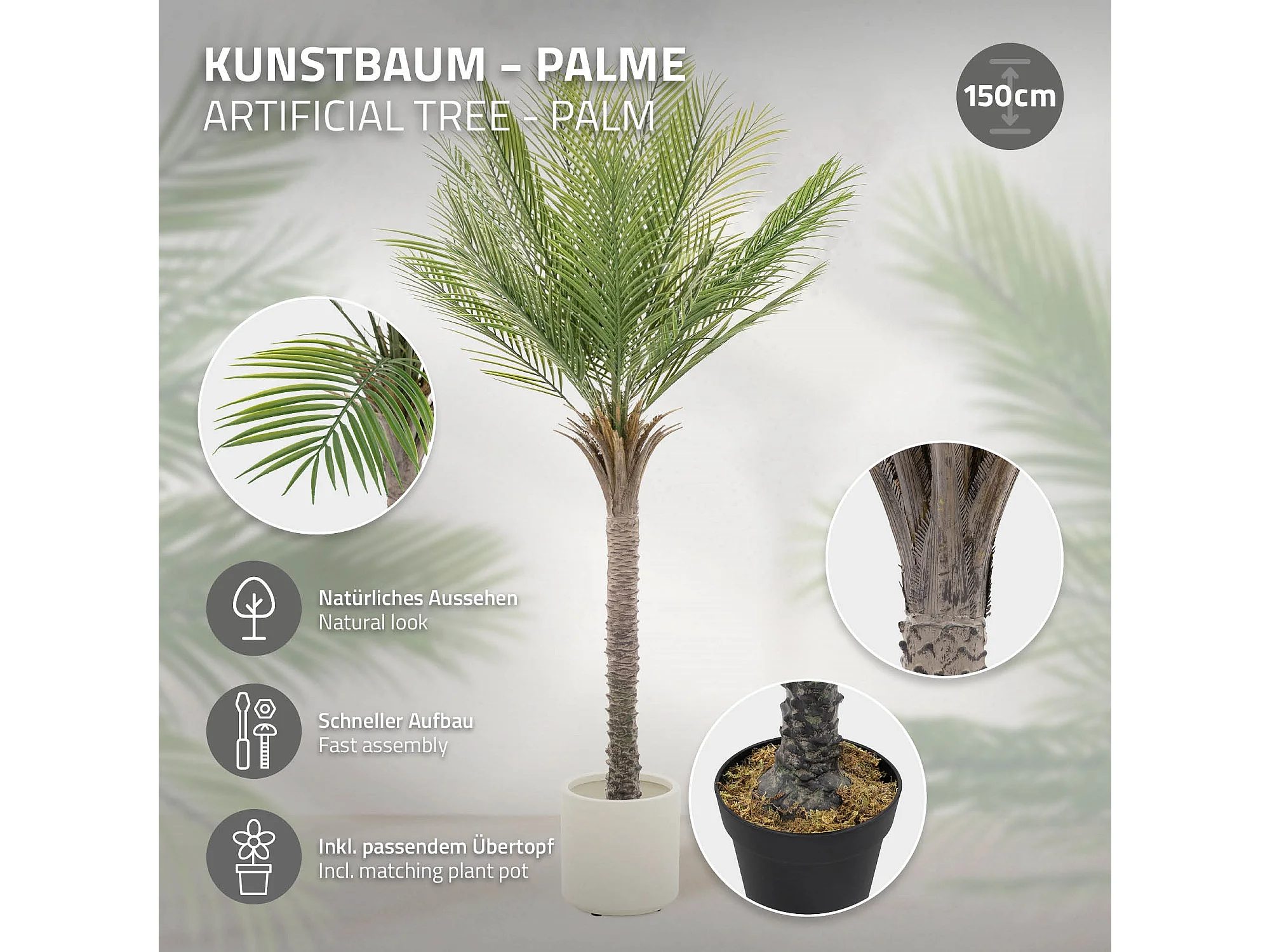 Palmier artificiel 150 cm, Plante artificielle grande, Palmier tropical artificiel, Plante artificielle, Plant Deko
