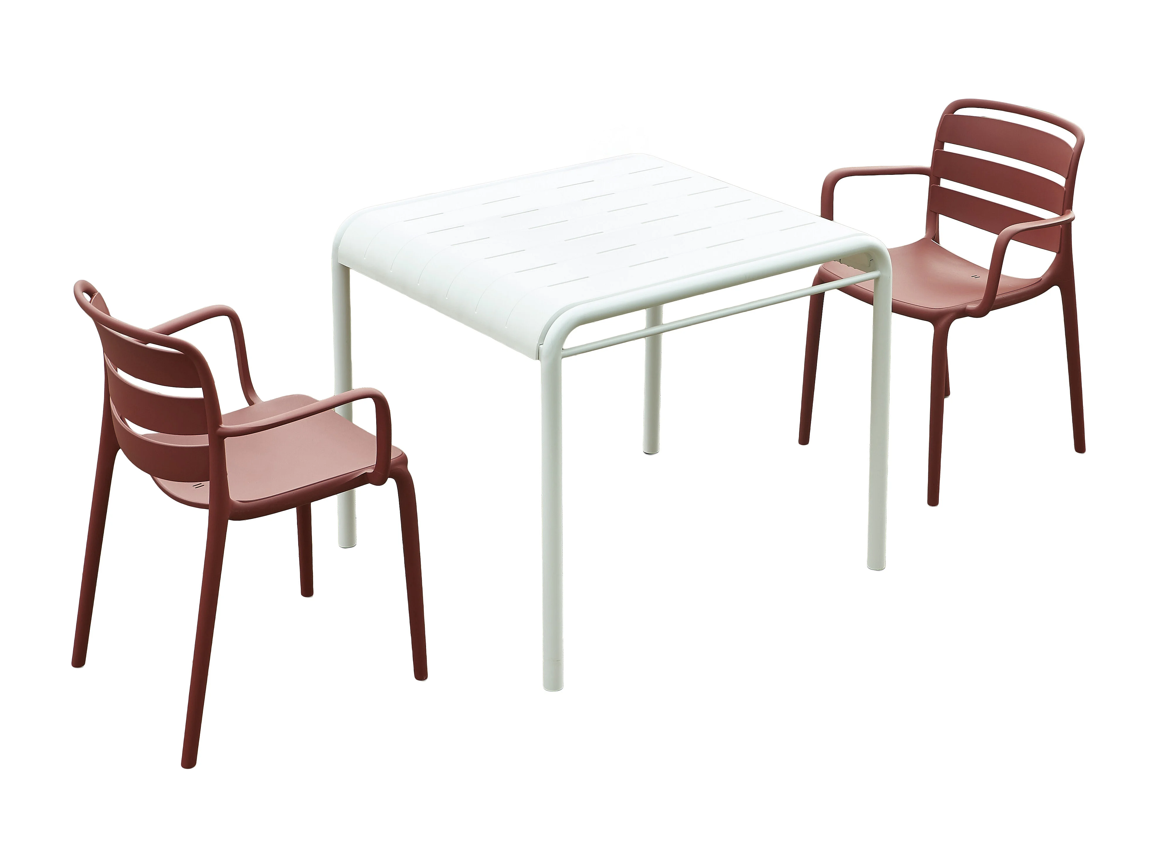 Salle à manger de jardin en polypropylène : une table L.90 cm et 2 fauteuils empilables - Terracotta - MOAH de MYLIA