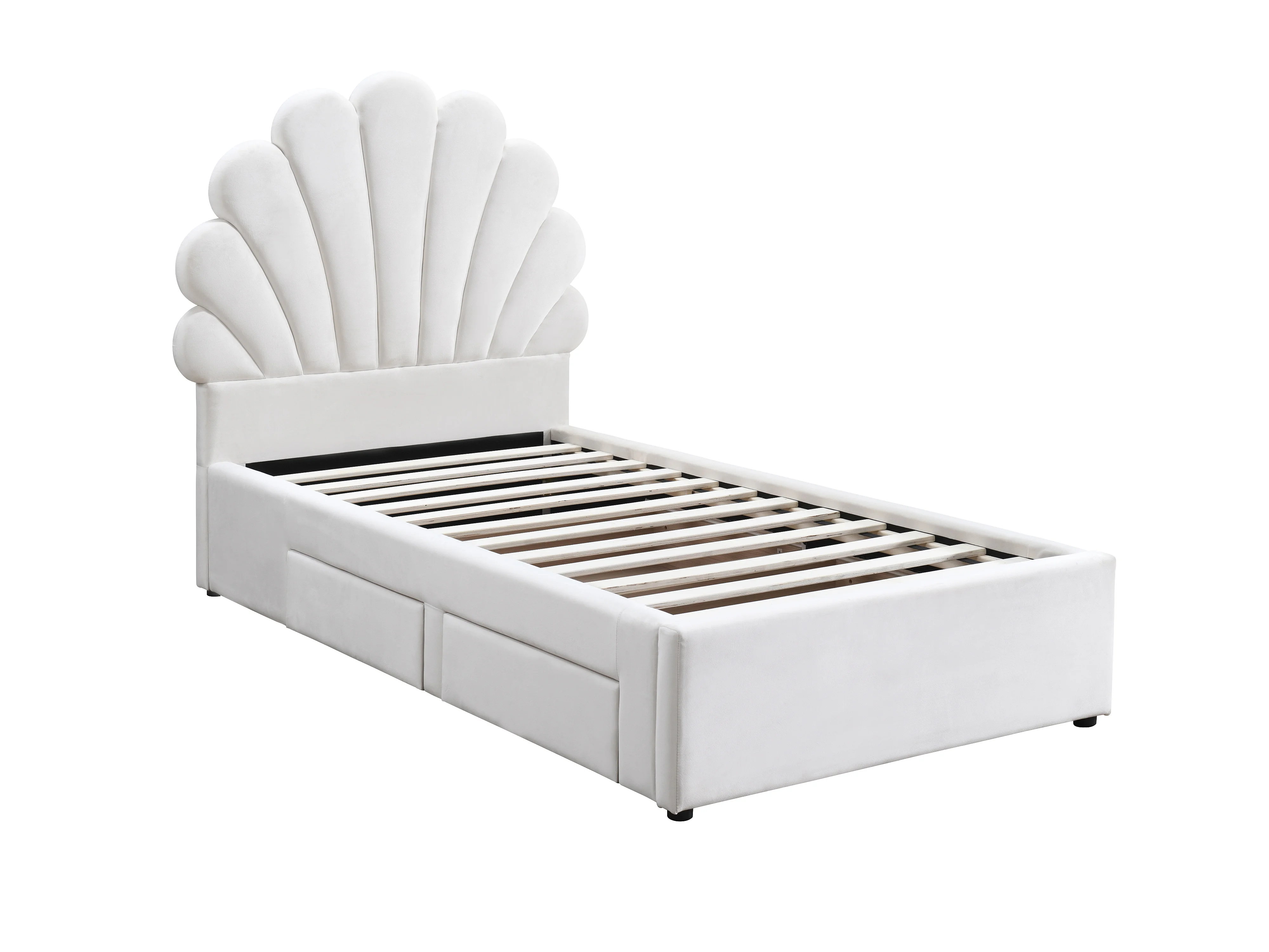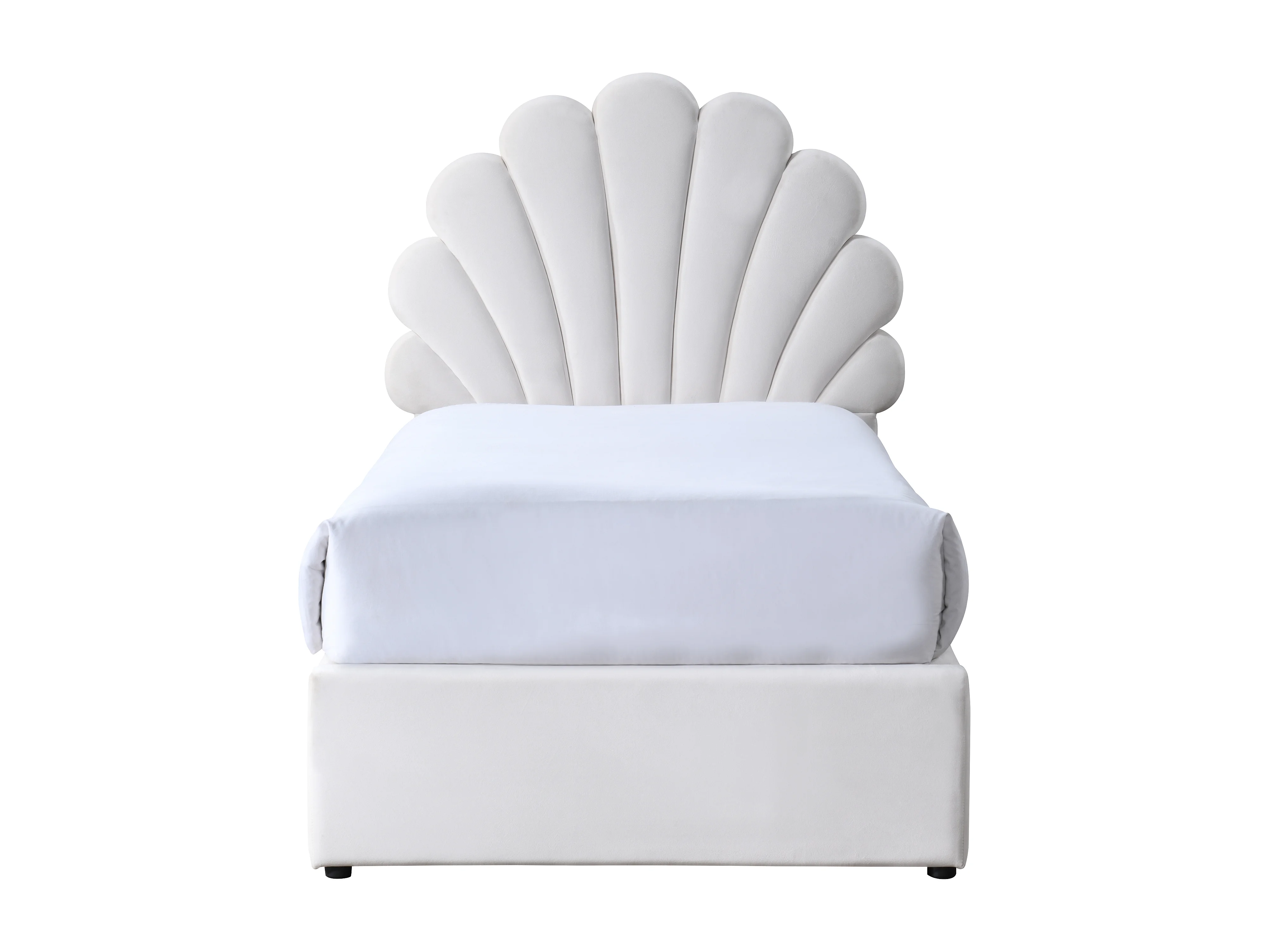 Lit coquillage 90 x 190 cm avec 2 tiroirs - Velours - Blanc + Matelas - MOANA