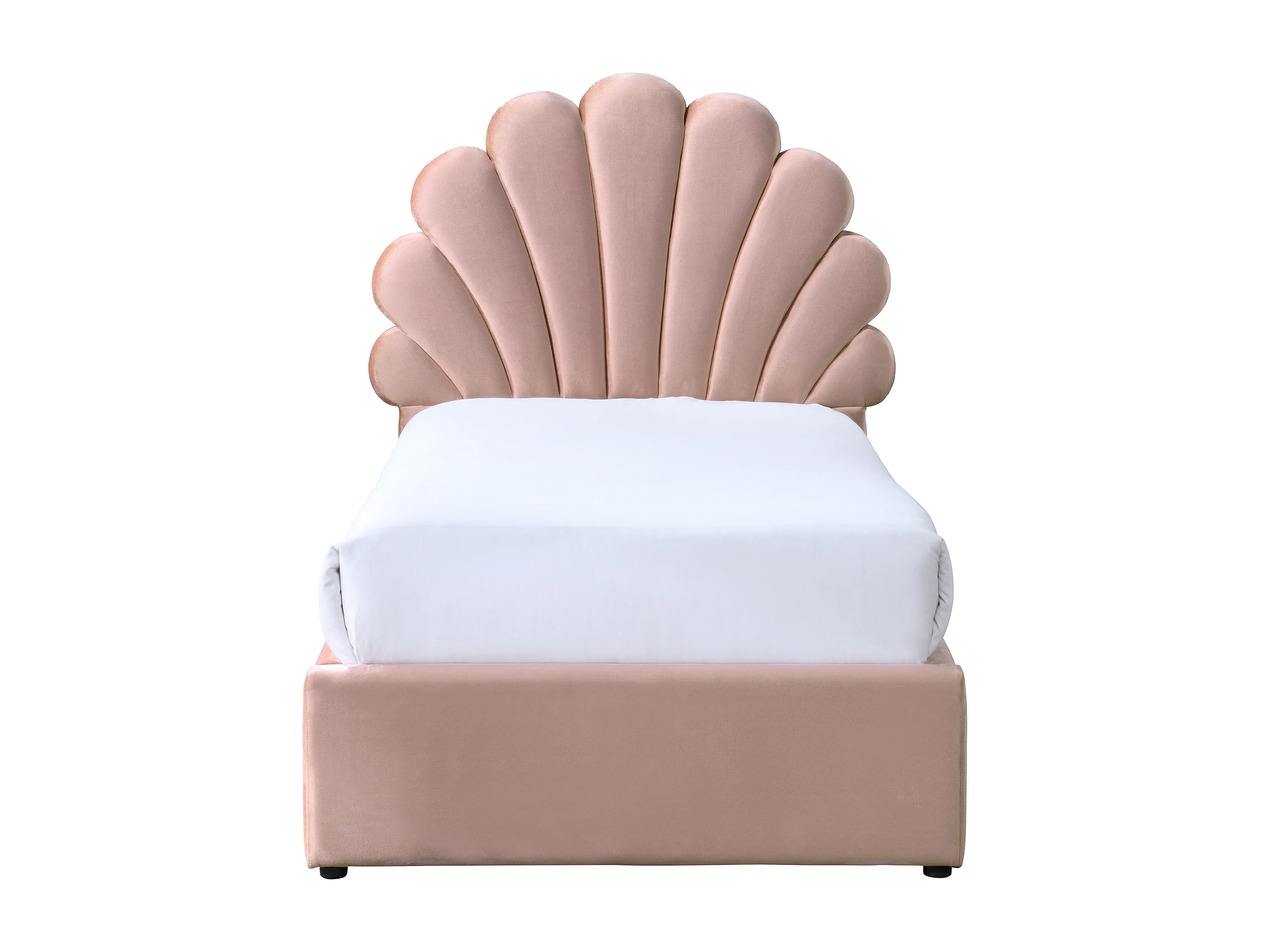 Lit coquillage 90 x 190 cm avec 2 tiroirs - Velours - Rose - MOANA