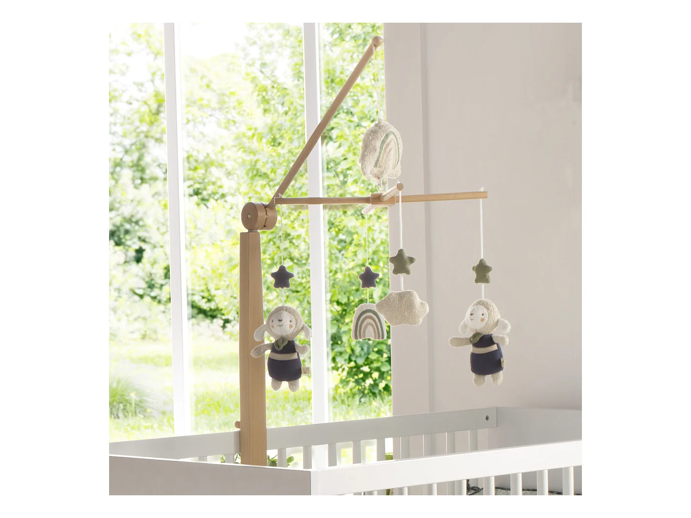 Mobile musical bébé en bois avec 4 jouets UNI SAUGE - Sauthon