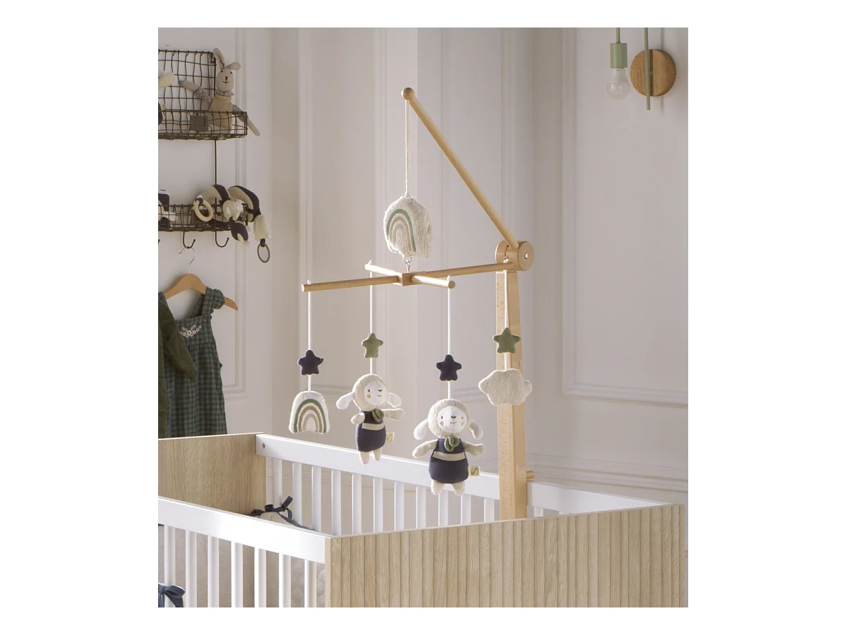 Mobile musical en bois avec jouets en coton PETIT NUAGE - Sauthon
