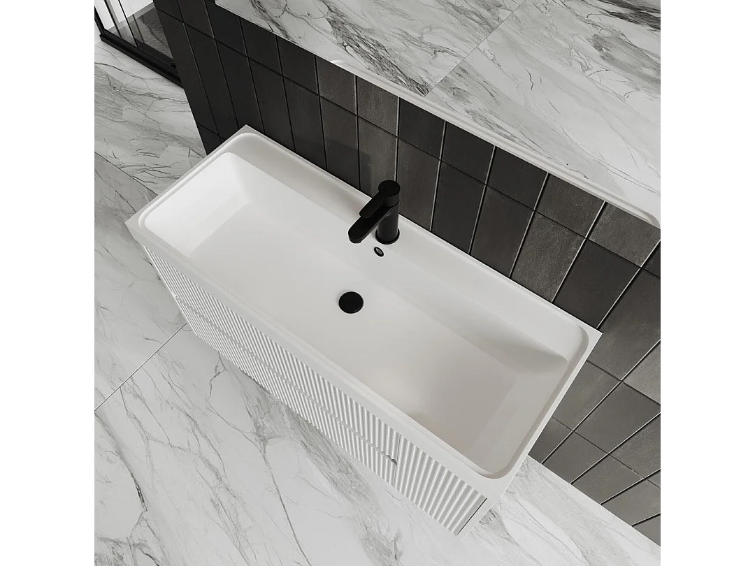 Mobile Salle De Bain Cannettato 100Cm Blanc Mat Miroir 100X60 | Cortina
