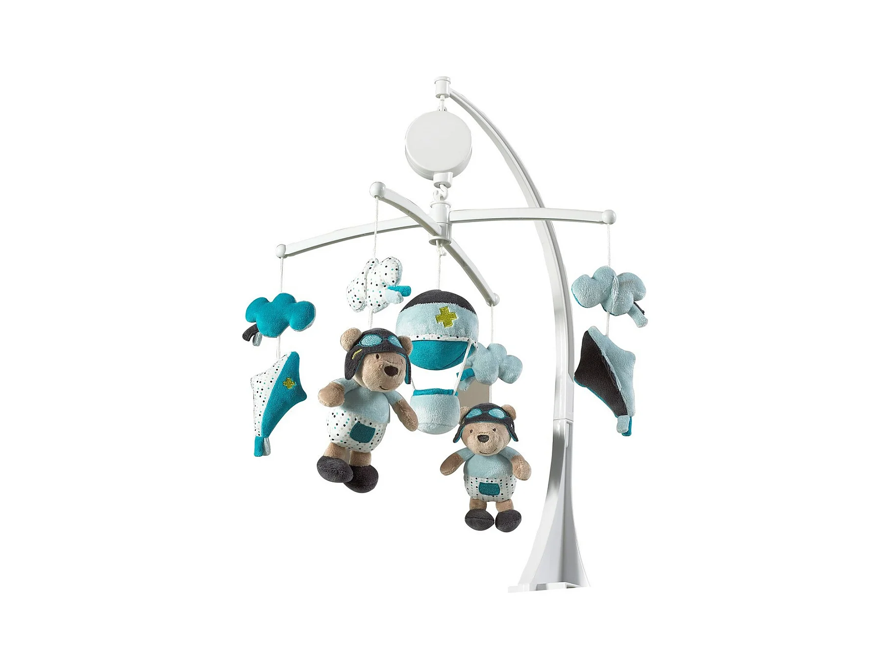 Mobile musical en bois avec jouets en coton PETIT NUAGE - Sauthon