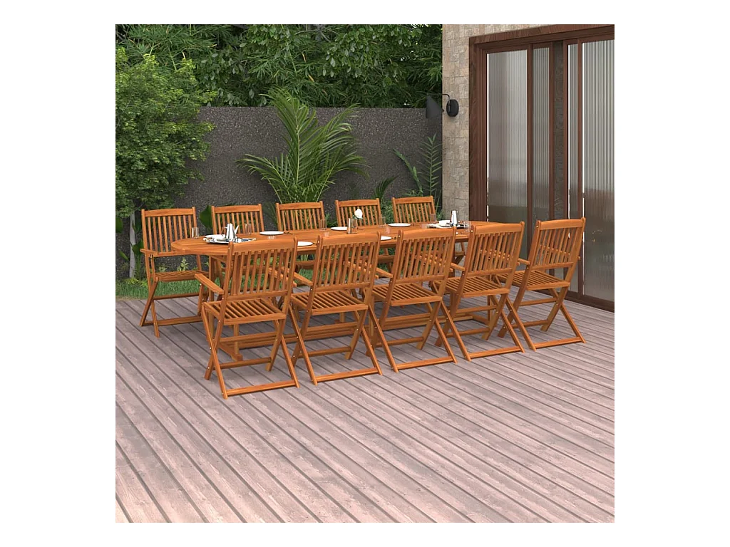 Mobilier à dîner de jardin 11 pcs Bois d'acacia massif 4