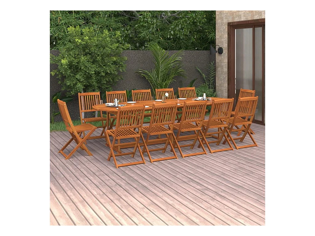 Mobilier à dîner de jardin 13 pcs Bois d'acacia massif 4