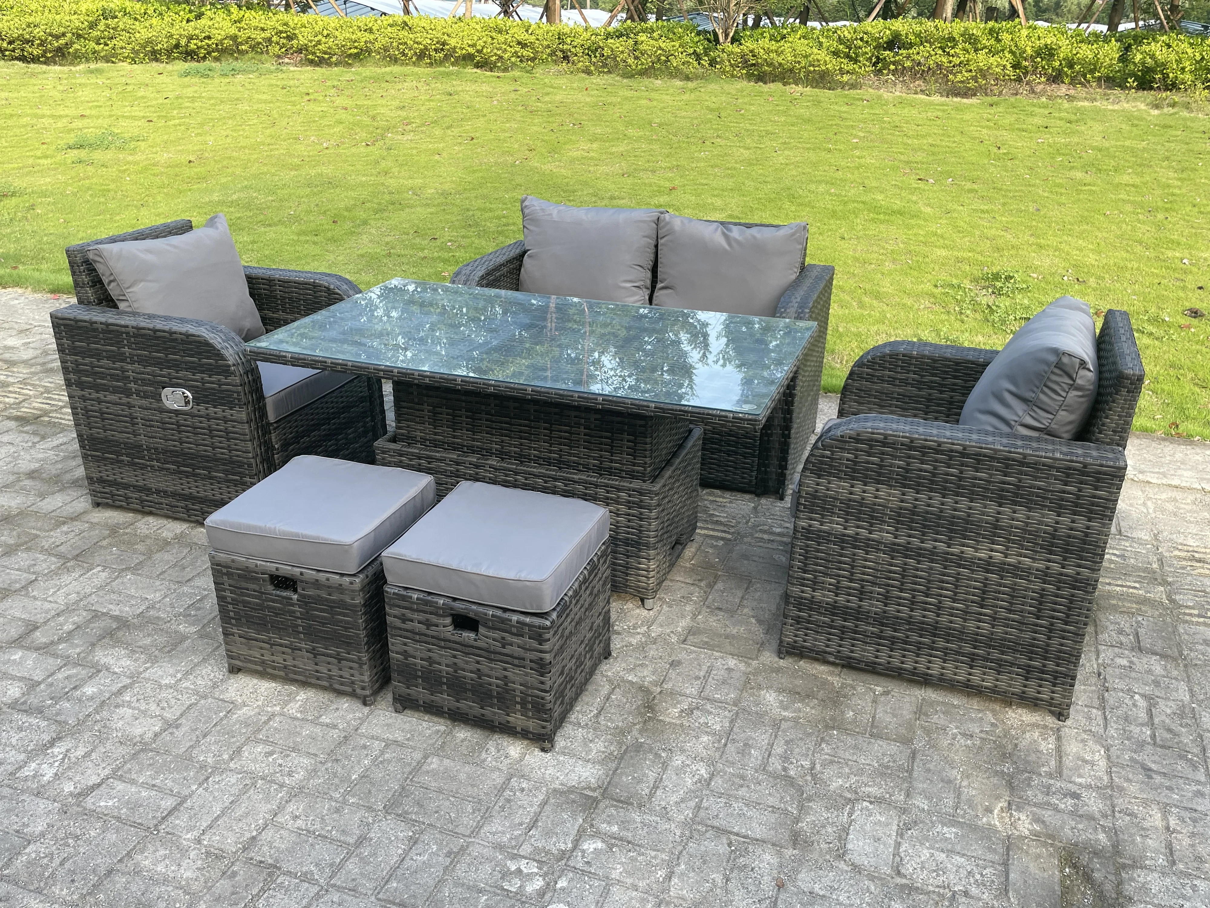 Mobilier À Dîner De Jardin en rotin ave Canapé inclinable Tabourets Table à manger réglable en hauteur Mélange gris foncé