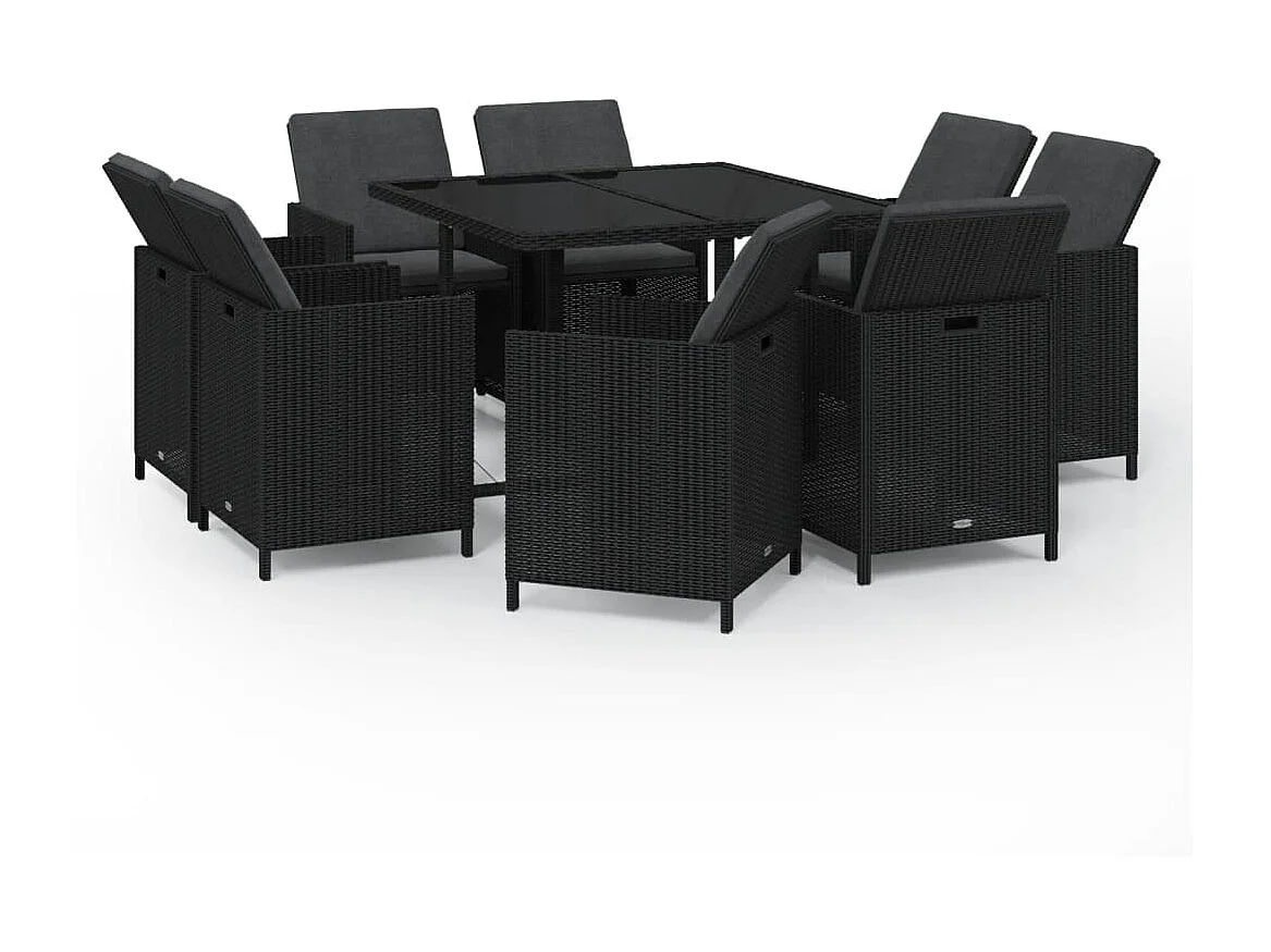 Mobilier à dîner de jardin et coussins 9pcs Résine tressée Noir 3