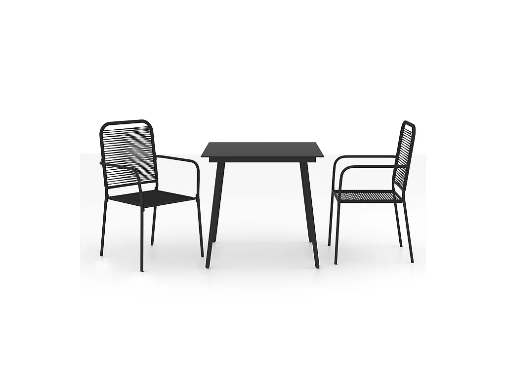 Mobilier à dîner d'extérieur 3 pcs Corde en coton et acier Noir