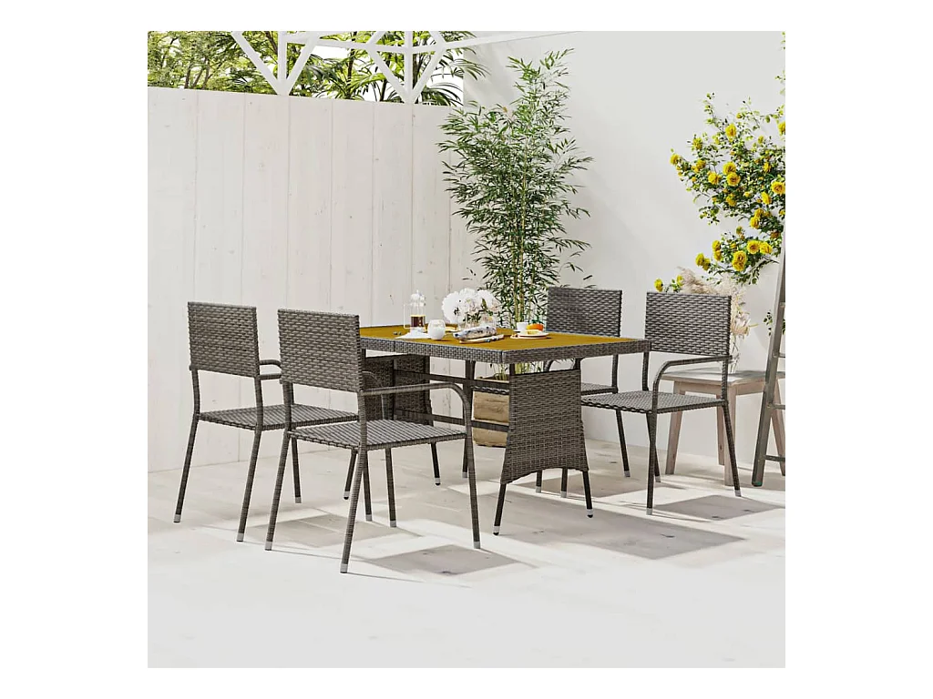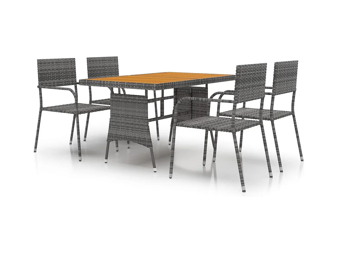 Mobilier à dîner d'extérieur 5 pcs Résine tressée Gris