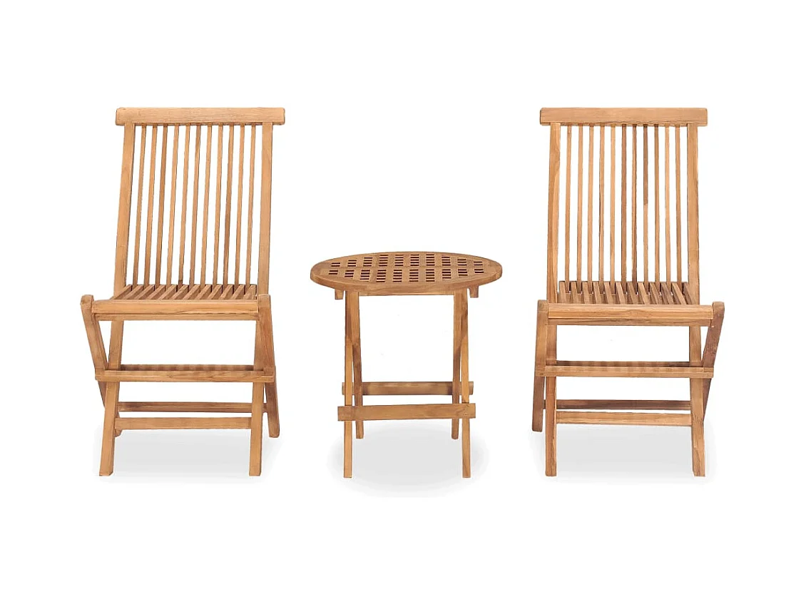 Mobilier à dîner d'extérieur pliable 3 pcs Bois solide de teck