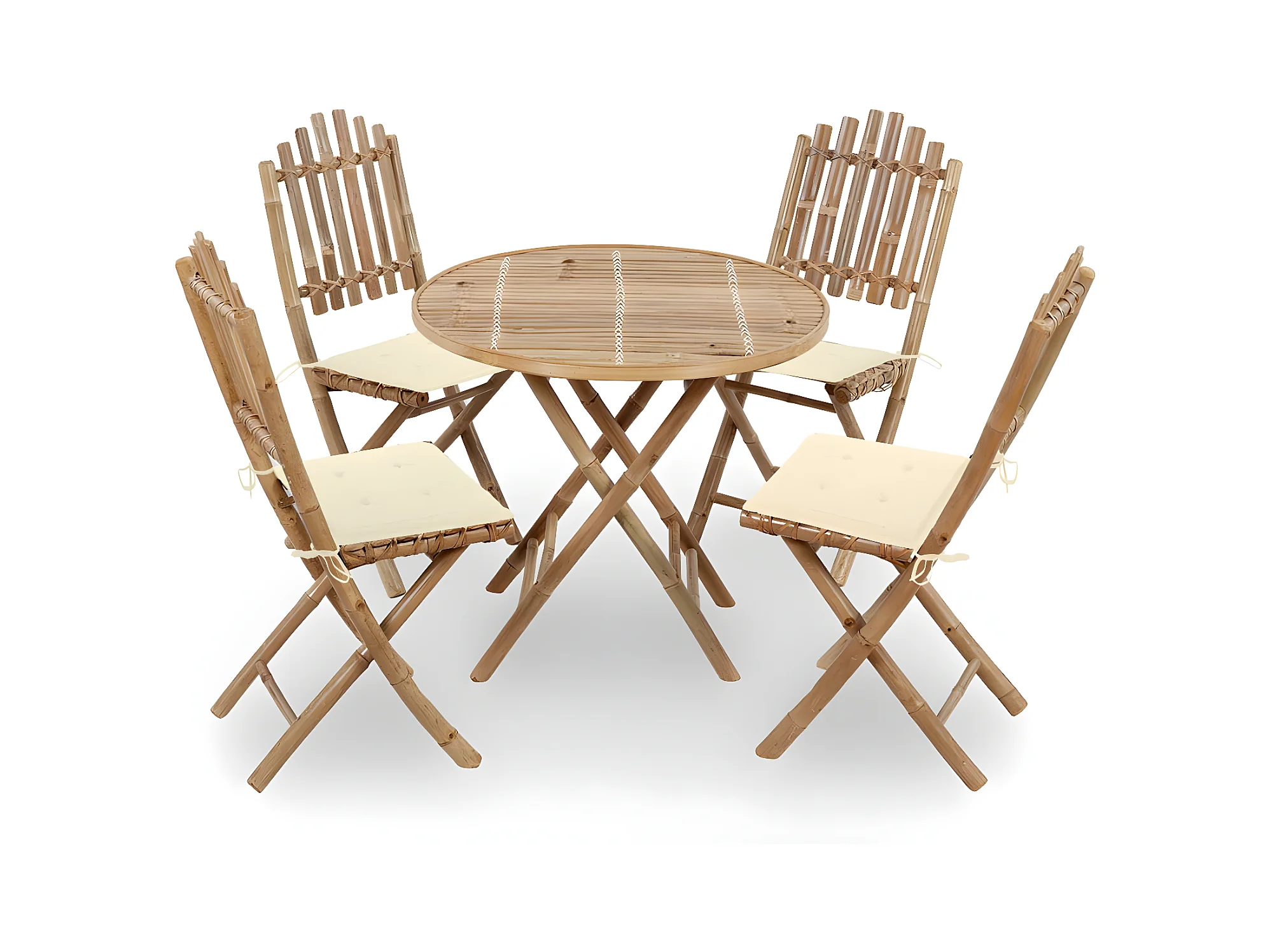 Mobilier à dîner d'extérieur pliable 5 pcs avec coussins Bambou 10