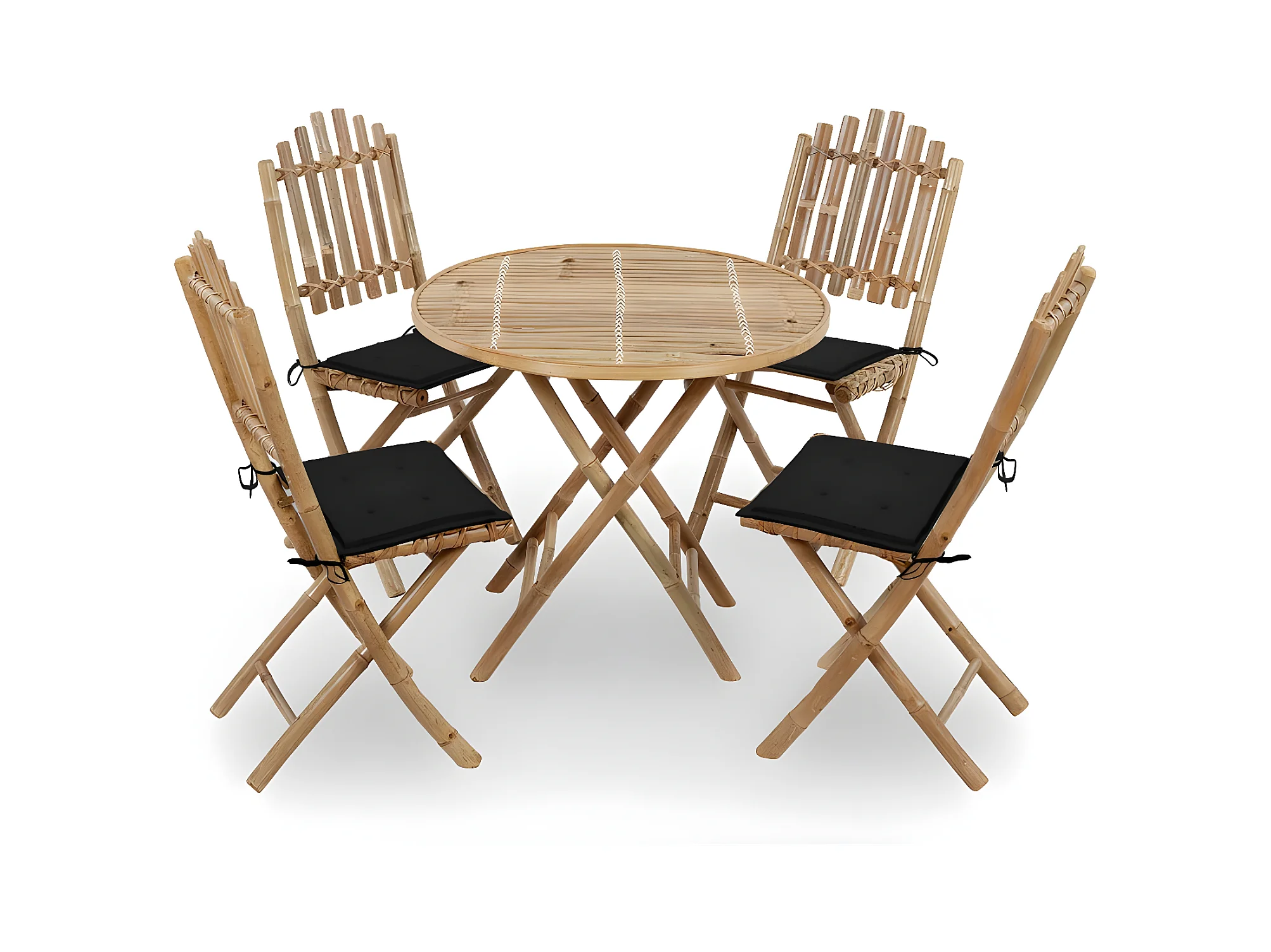Mobilier à dîner d'extérieur pliable 5 pcs avec coussins Bambou 14