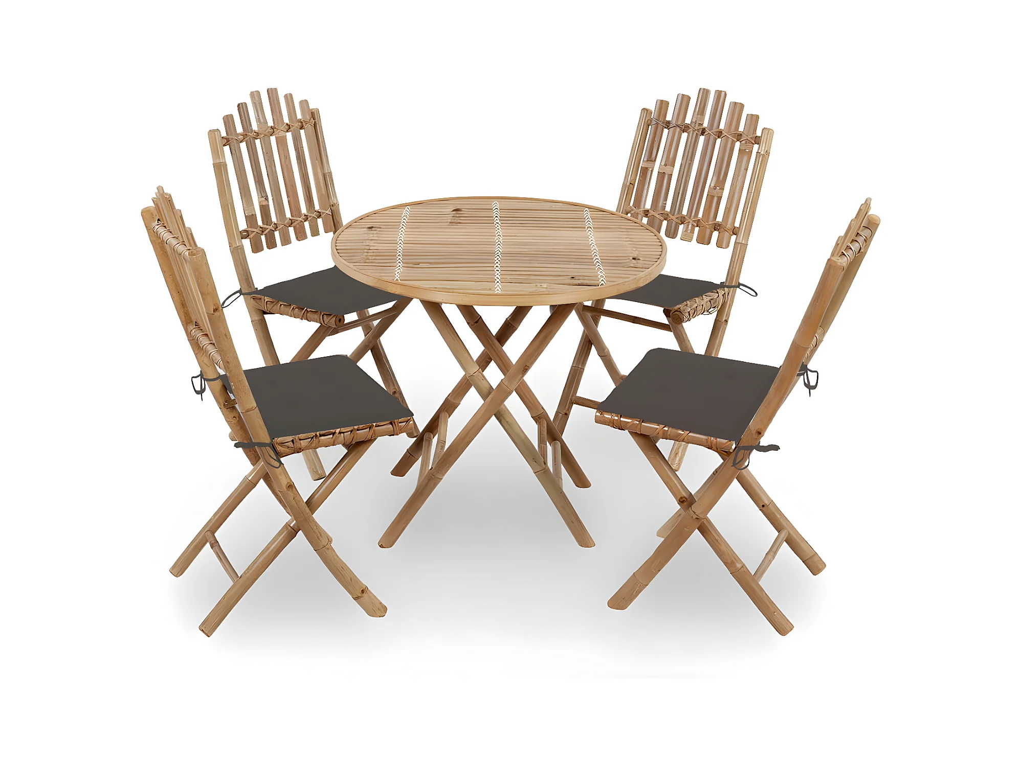 Mobilier à dîner d'extérieur pliable 5 pcs avec coussins Bambou 19