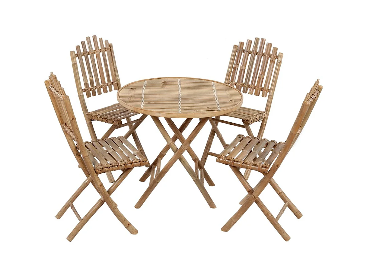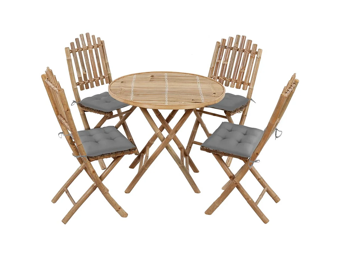 Mobilier à dîner d'extérieur pliable 5 pcs avec coussins Bambou 5