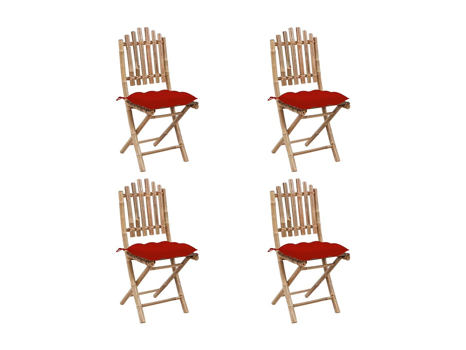 Mobilier à dîner d'extérieur pliable 5 pièces avec coussins Bambou