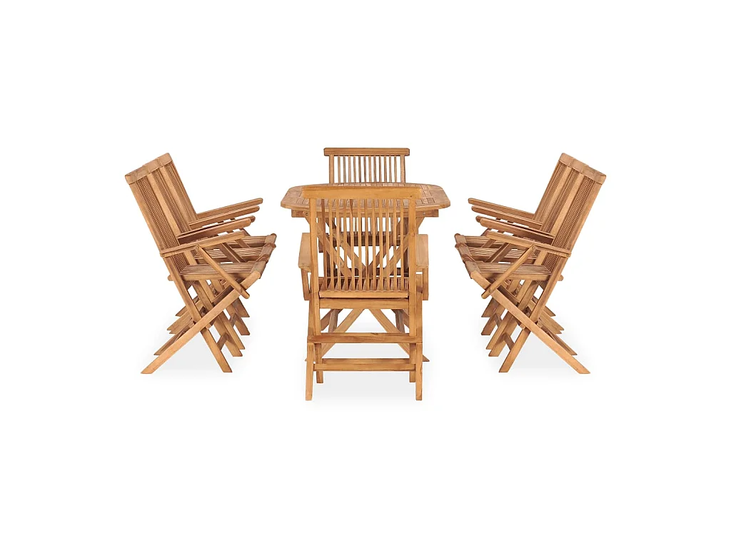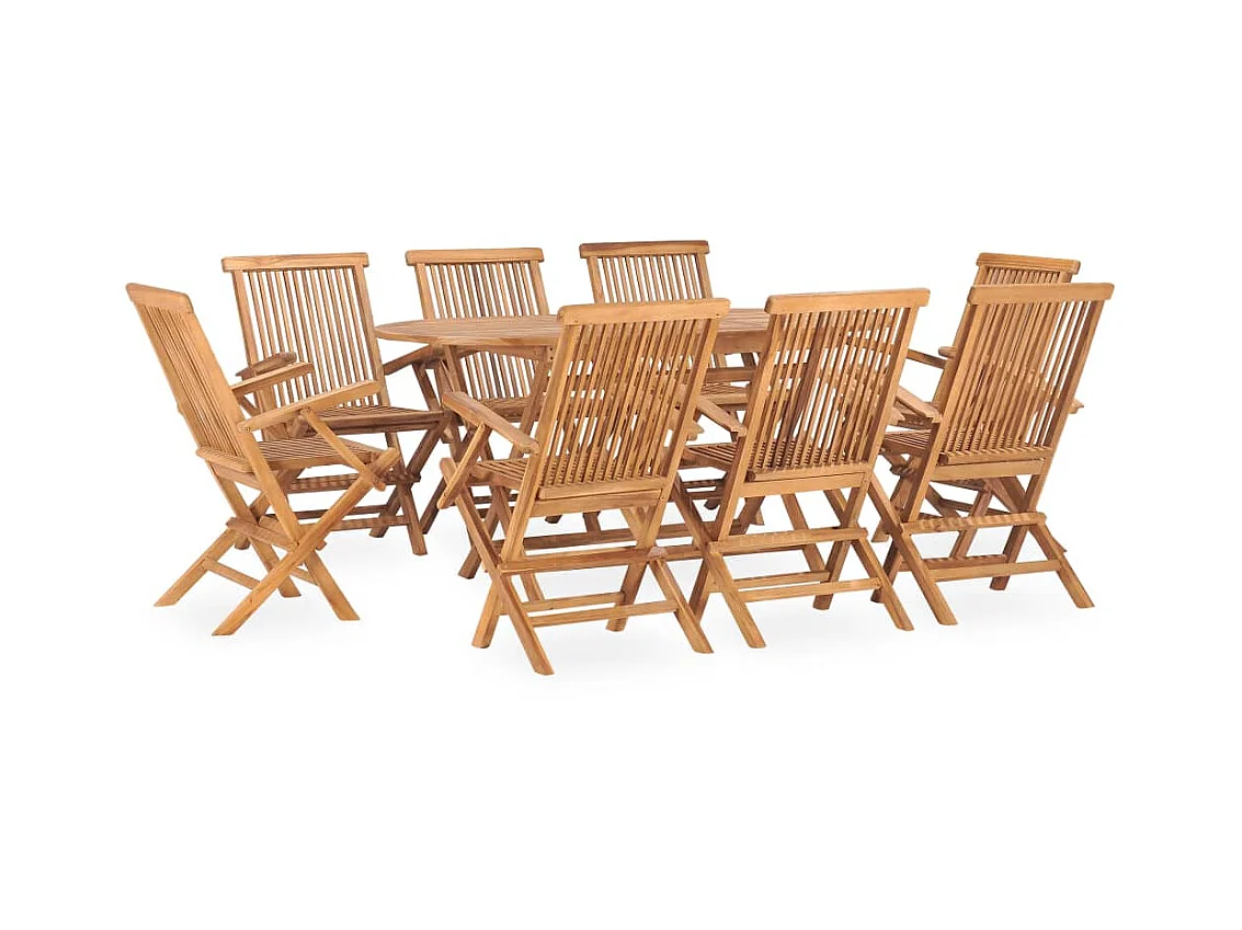 Mobilier à dîner d'extérieur pliable 9 pcs Bois solide de teck