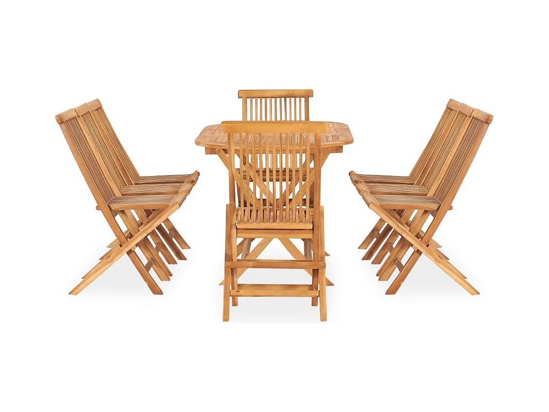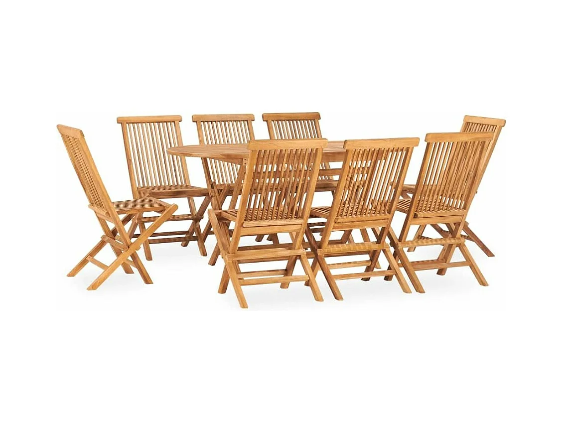 Mobilier à dîner d'extérieur pliable 9 pcs Bois solide de teck 2