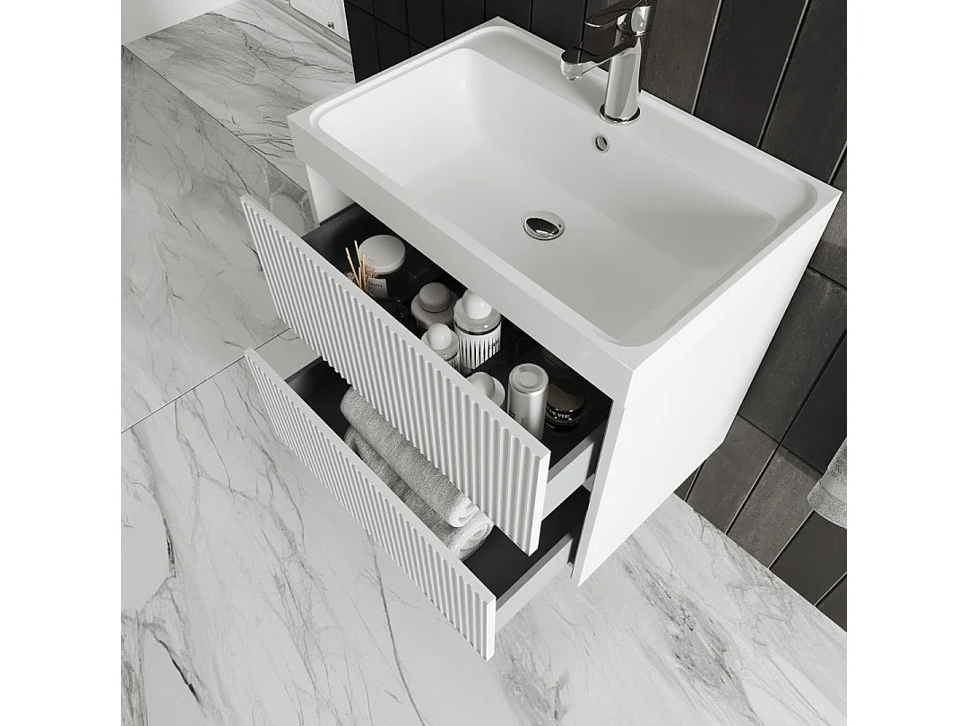 Mobilier De Salle De Bain 60Cm Avant Blanc Mat En Bois Canné | Cortina