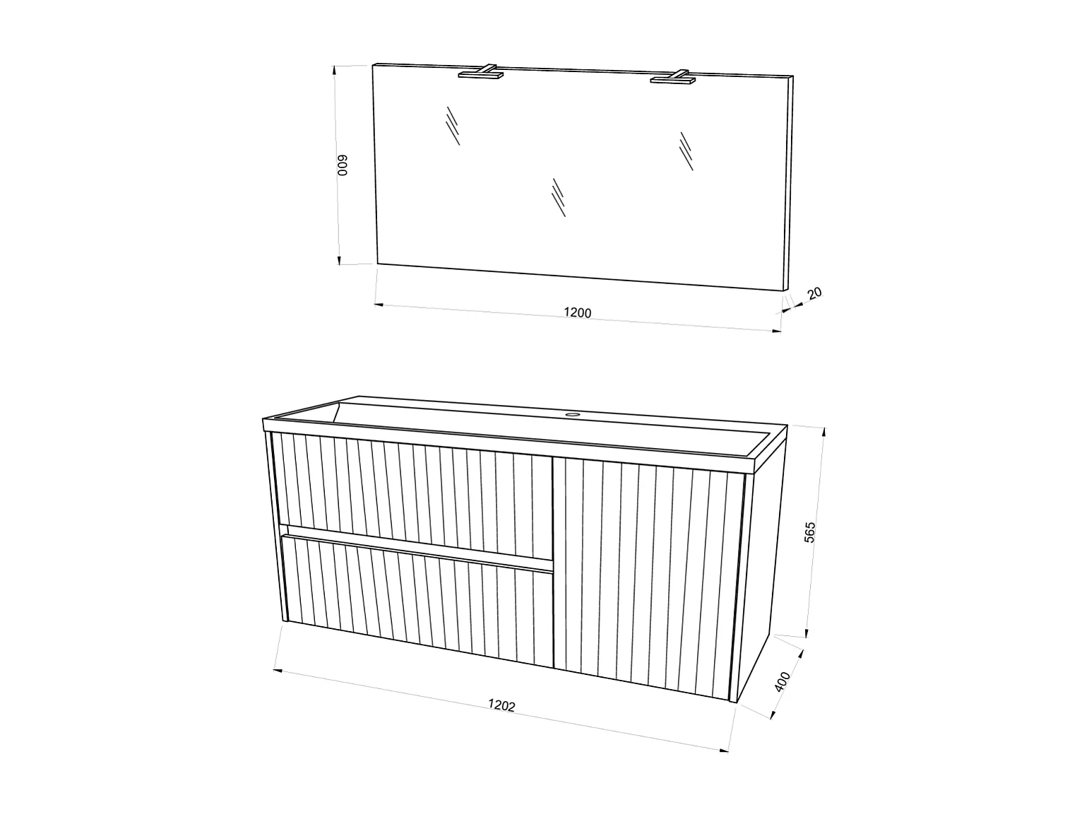 Mobilier De Salle De Bain Suspendu 120Cm Blanc Mat Canneleté | Cortina