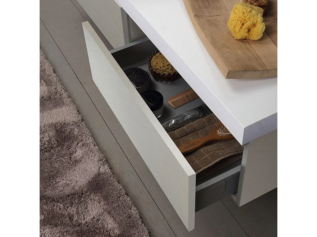Mobilier De Salle De Bains Suspendu 150Cm Avec Tiroirs Et Meuble Suspendu Gris Perle | Valentina
