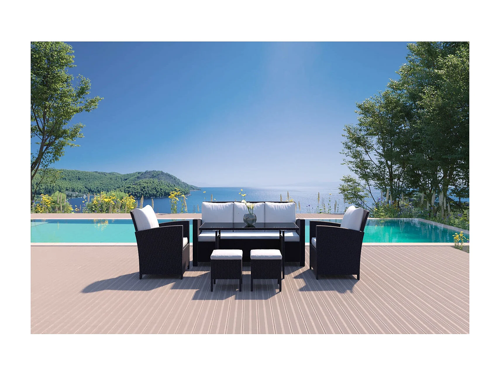 Salon de jardin 7 places en résine tressée noir et blanc MODENA
