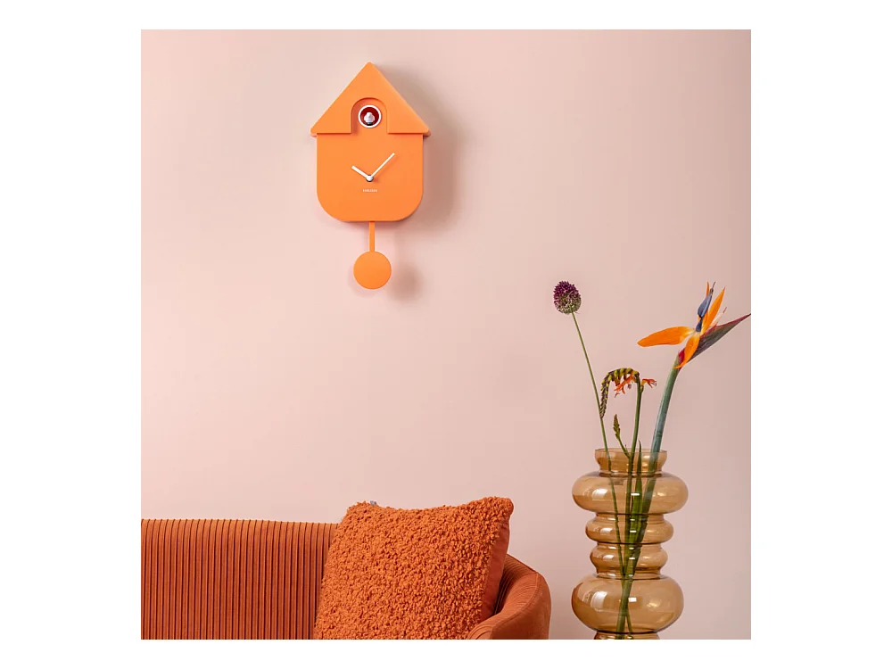 Horloge murale moderne rétro - Orange vif - Ø34 cm